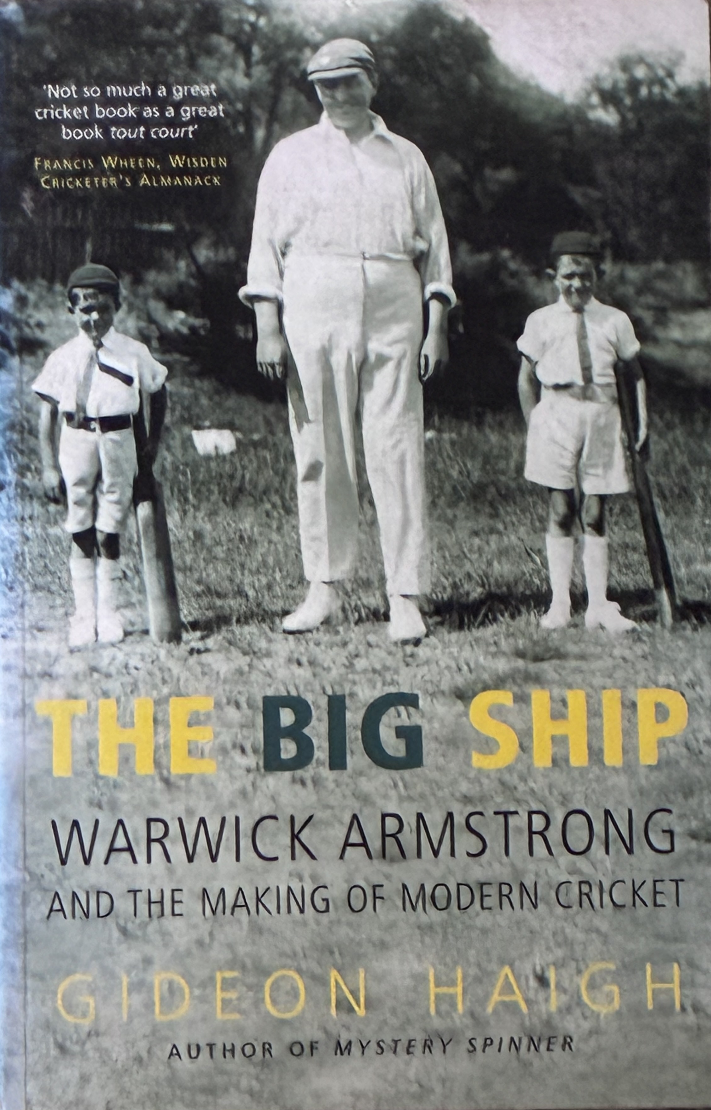 | Bibliog Item No: 17736 ISBN: 1854108921 Category: biography Examined by JW | The big ship Warwick Armstrong and the making of modern cricket Author: Gideon Haigh pub. 2002 by Aurum Press Limited height: 19.5 cm; width: 12.8 cm. paperback (with spine) 440p., photographs, statistics, bibliography, index | ![]() |