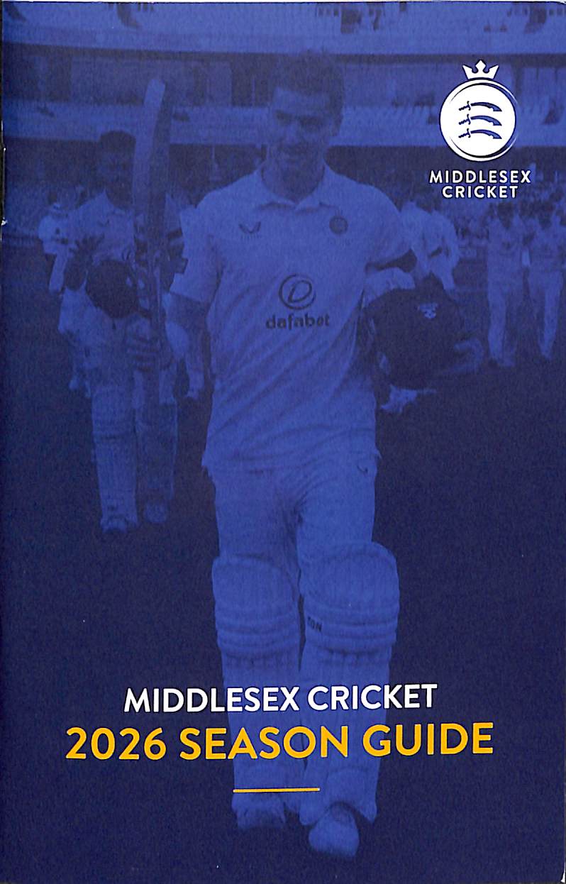 | Bibliog Item No: 18019 Category: annual Examined by PDG | Middlesex Cricket 2026 season guide pub. 2026 height: 15.5 cm; width: 10 cm. paperback (staple bound) 28p. including covers, photographs | ![]() |