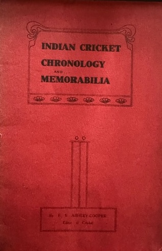 | Bibliog Item No: 17909 Padwick Volume I (second edition) 3805 Category: general history Examined by MC | Indian cricket chronology and memorabilia Author: F. S. Ashley-Cooper pub. 1912 by Duke & Son, Penshurst height: 19.5 cm; width: 13 cm. paperback (staple bound) 24p, statistics Signed and numbered limited edition of 30 copies | ![]() |