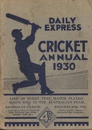| Bibliog Item No: 17709 Padwick Volume I (second edition) 1060 Category: annual Examined by PNE | Daily Express cricket annual season 1930 pub. 1930 by Lane Publications, London height: 13.5 cm; width: 10 cm. paperback (with spine) 128p., scores, statistics | ![]() |