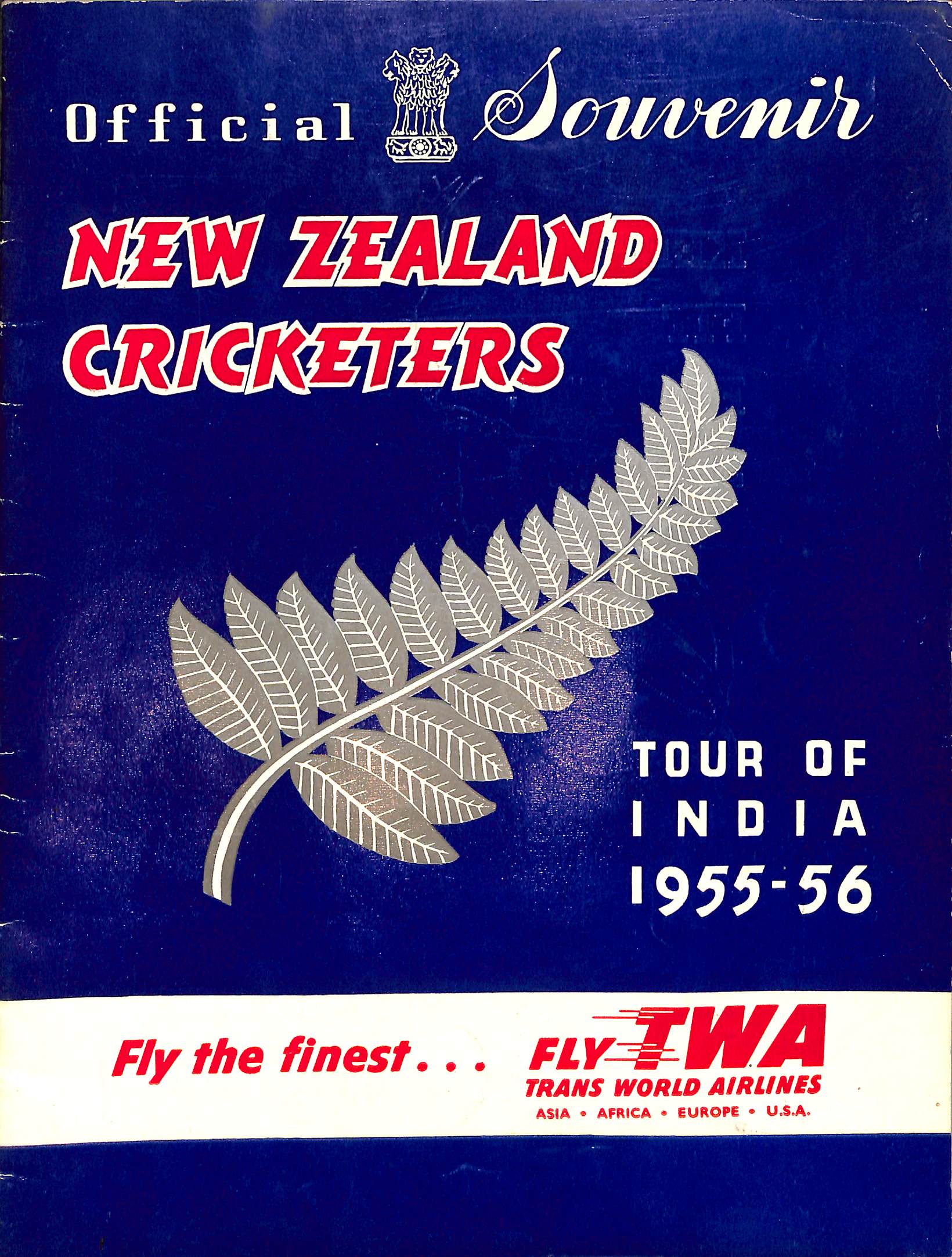 | Bibliog Item No: 17920 Padwick Volume I (second edition) 5565 Category: tour brochure Examined by PDG | Official souvenir New Zealand cricketers tour of India 1955-56 Compiled by B. D. Panwelkar pub. 1955 by Board of Control for Cricket in India, De;lhi height: 27 cm; width: 20.5 cm. paperback (staple bound) 44p., photographs | ![]() |