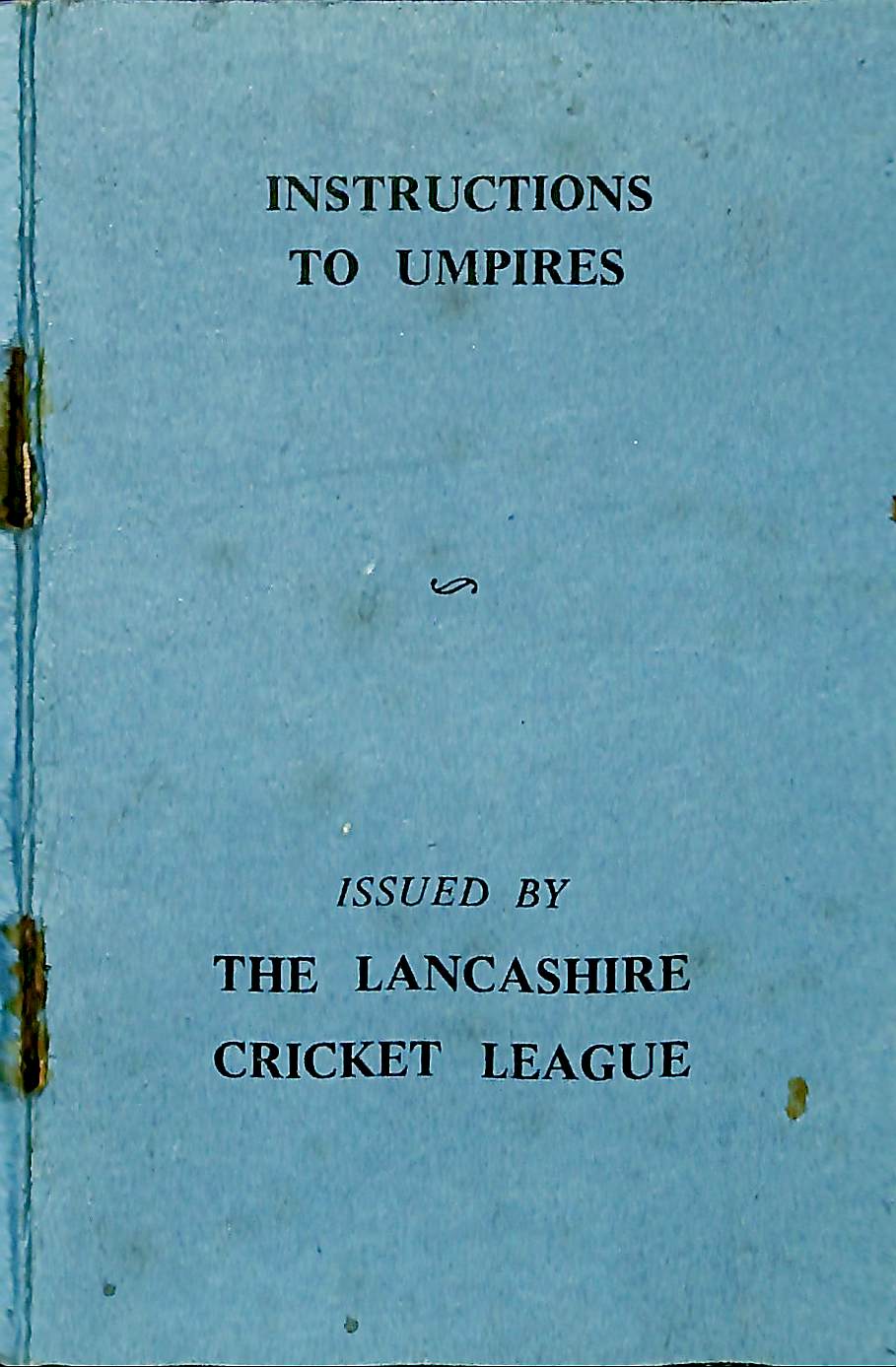 | Bibliog Item No: 17024 Category: league cricket; umpiring Examined by PDG | Instructions to umpires pub. 1921 by Lancashire Cricket League pamphlet 4p. including covers | NO IMAGE |