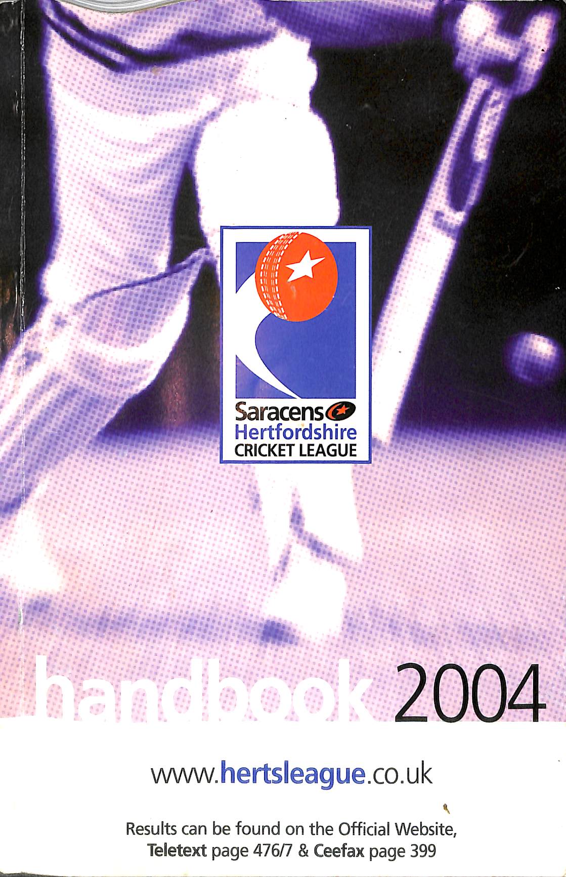| Bibliog Item No: 17026 Category: annual; league cricket Examined by PDG | Hertfordshire Cricket League handbook 2004 pub. 2004 A5. paperback (with spine) 128p., photographs, statistics | ![]() |