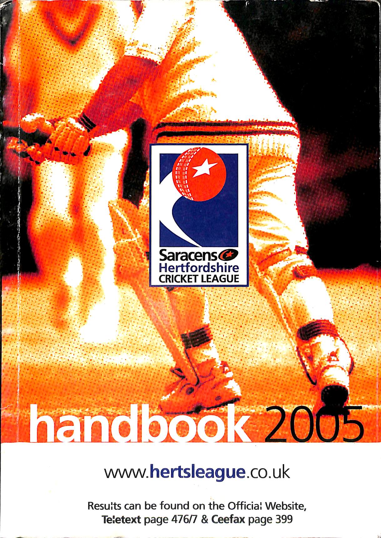 | Bibliog Item No: 6332 Category: annual Examined by PDG | 2005 Hertfordshire Cricket The official handbook of the Hertfordshire County Cricket Association pub. 2005 A5. paperback (with spine) 132p., photographs, scores, statistics | ![]() |
