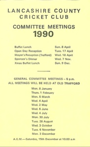 Lancashire CCC Committtee Card 1990