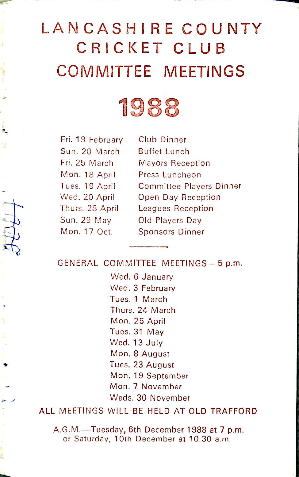 Lancashire County Cricket Club Committee 1988 |