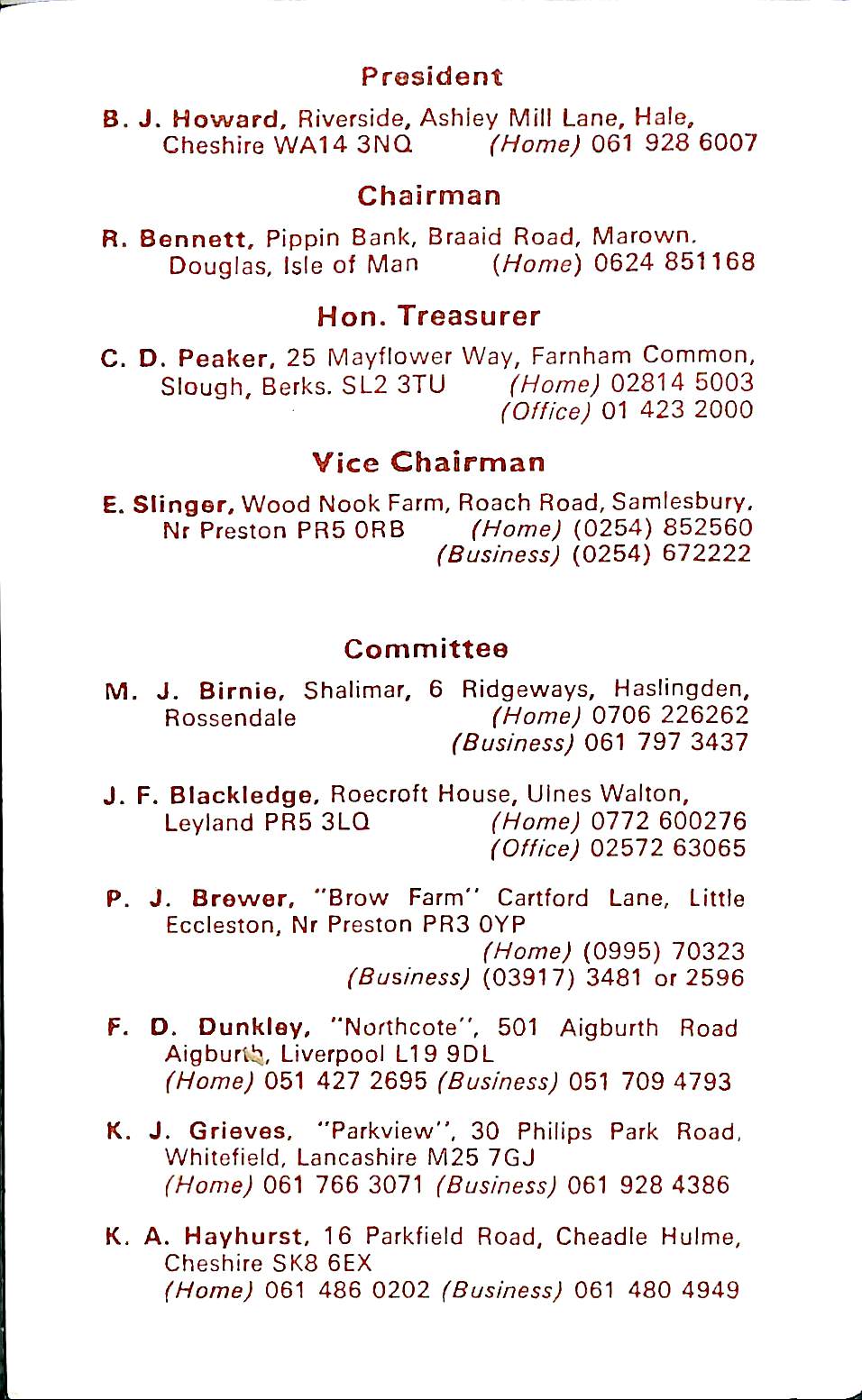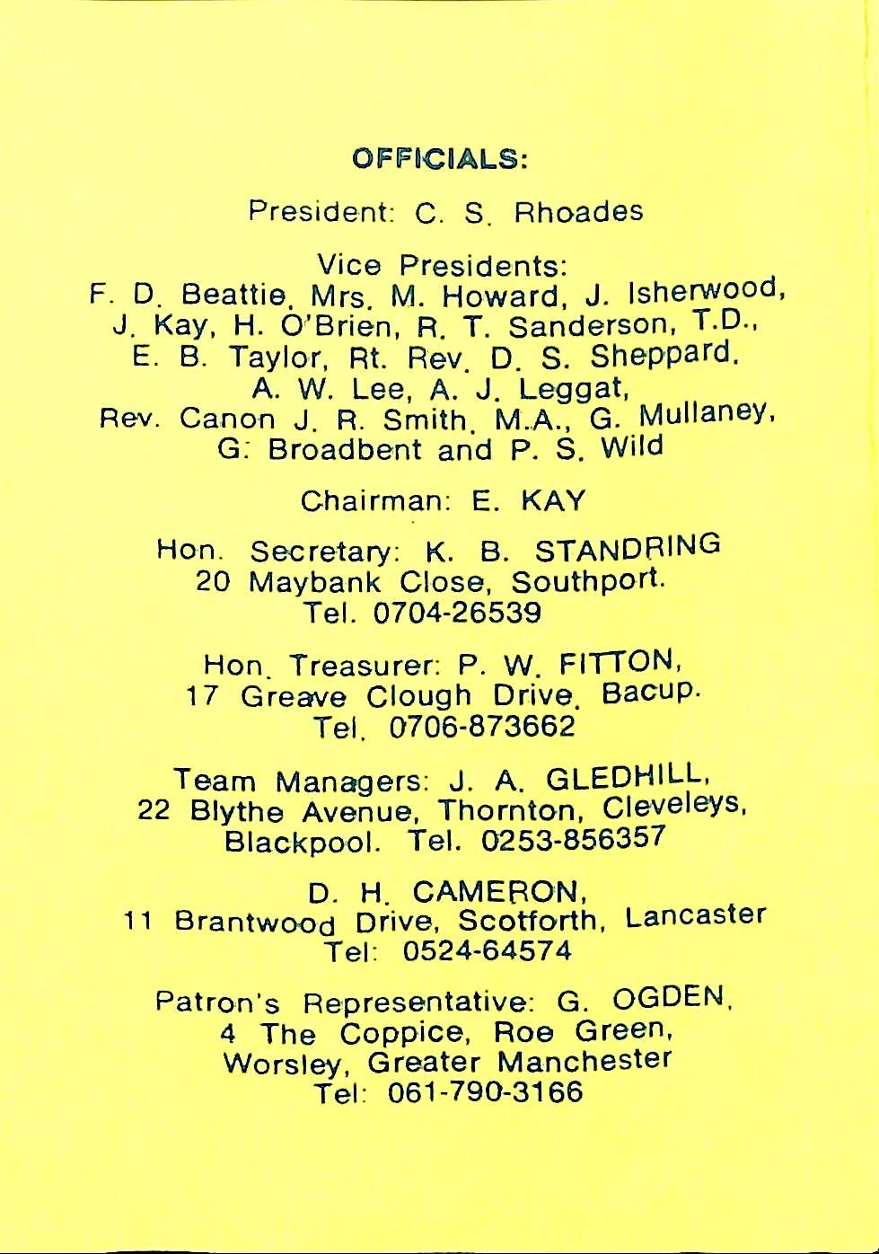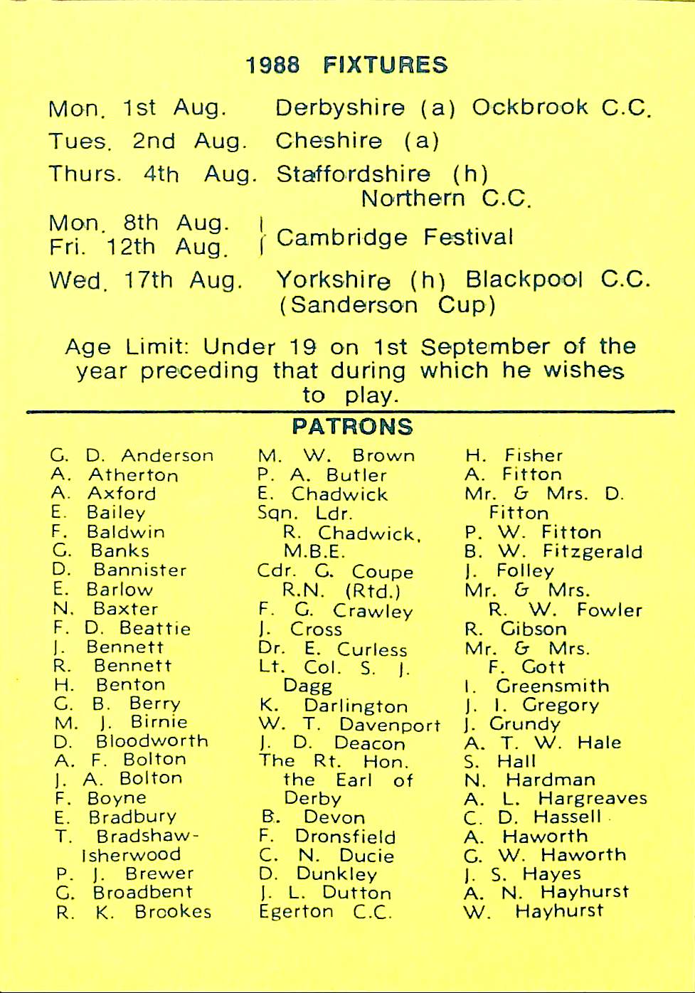 Lancashire Cricket Federation Patron 1988 |