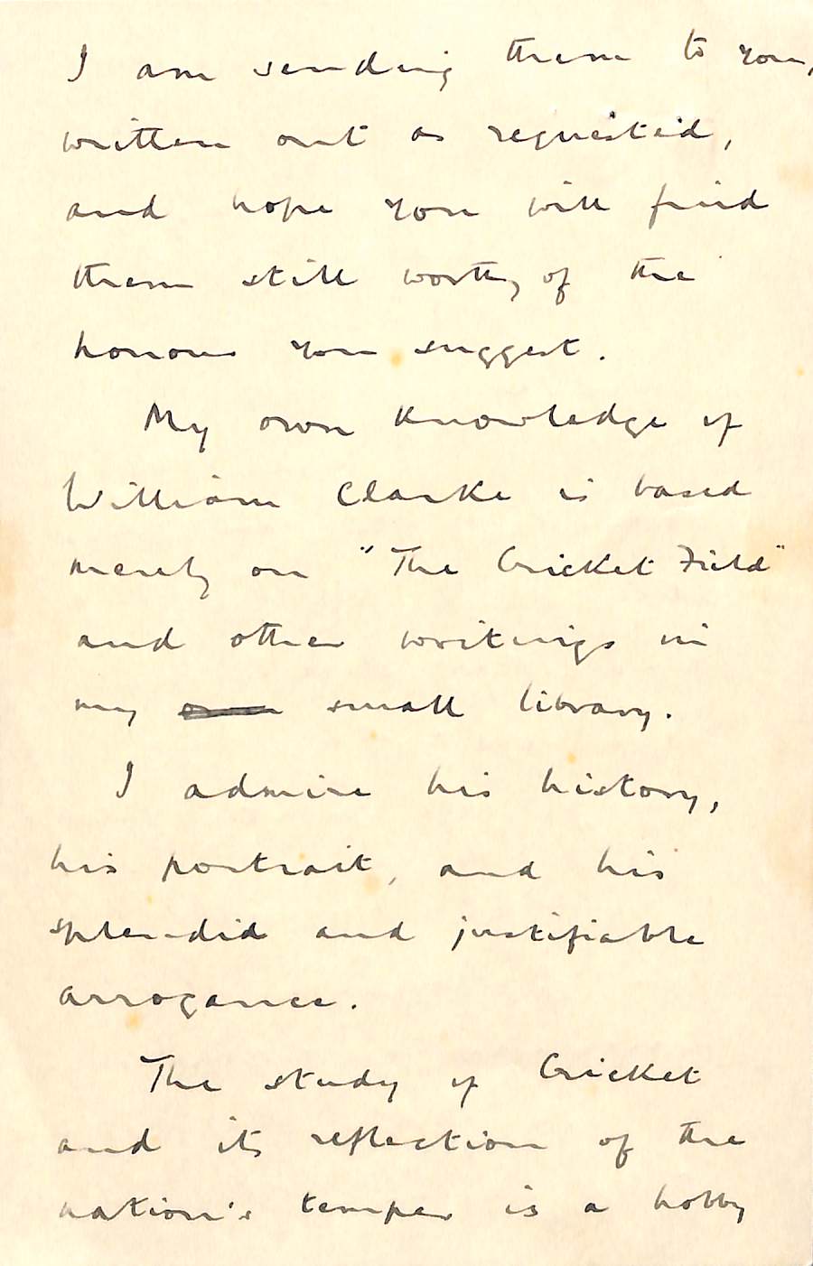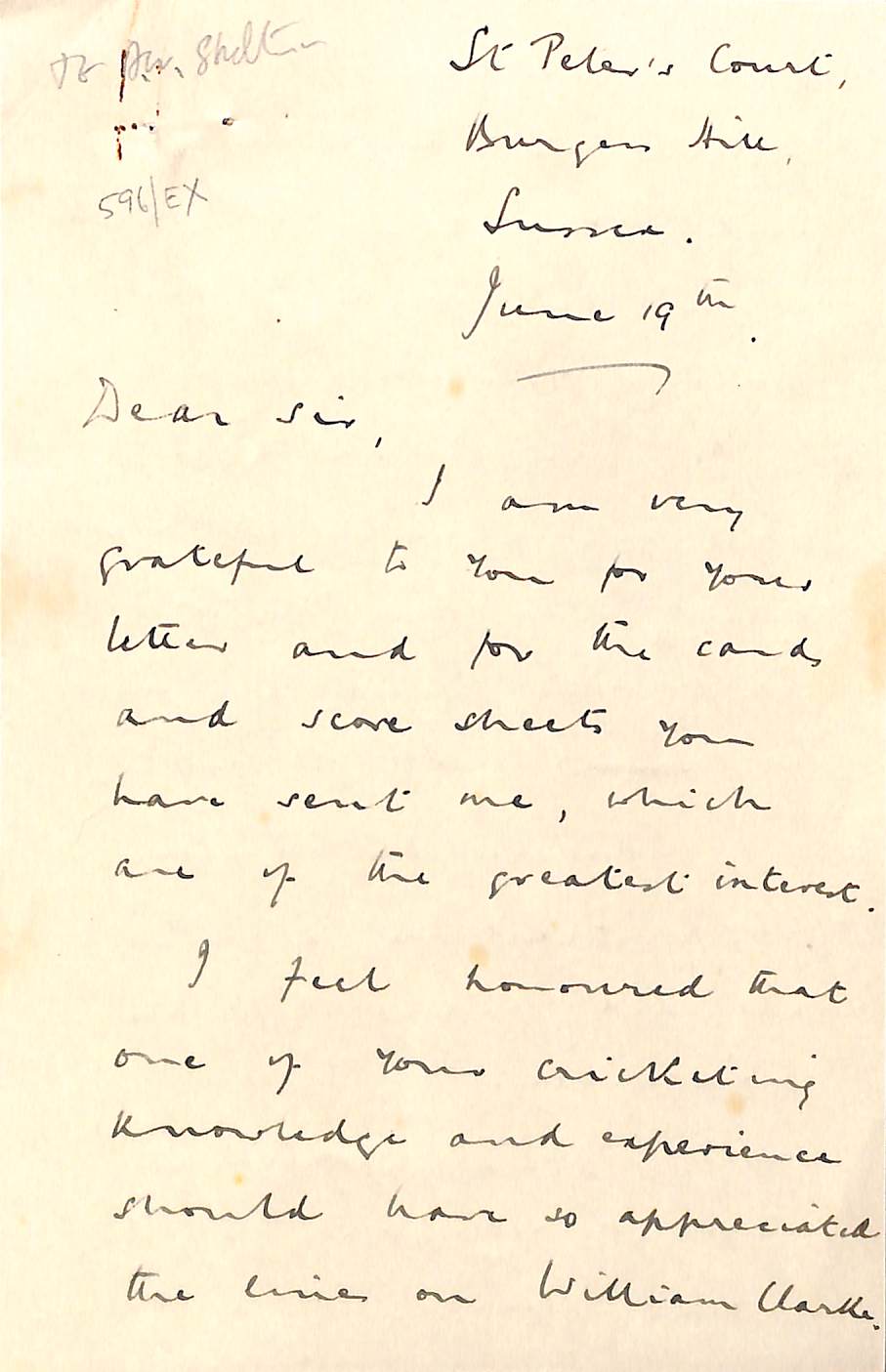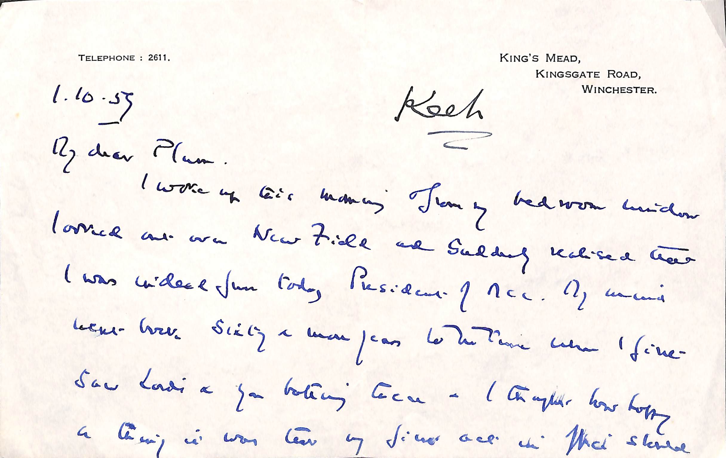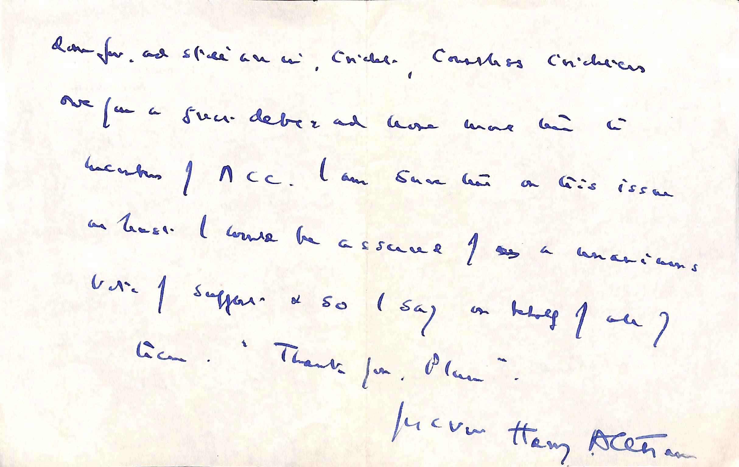 From Henry Altham To Pelham Warner On 1st October 1959 Permission to re-use parts of the letter are granted provided the rights of the current owner and this website are acknowledged. |