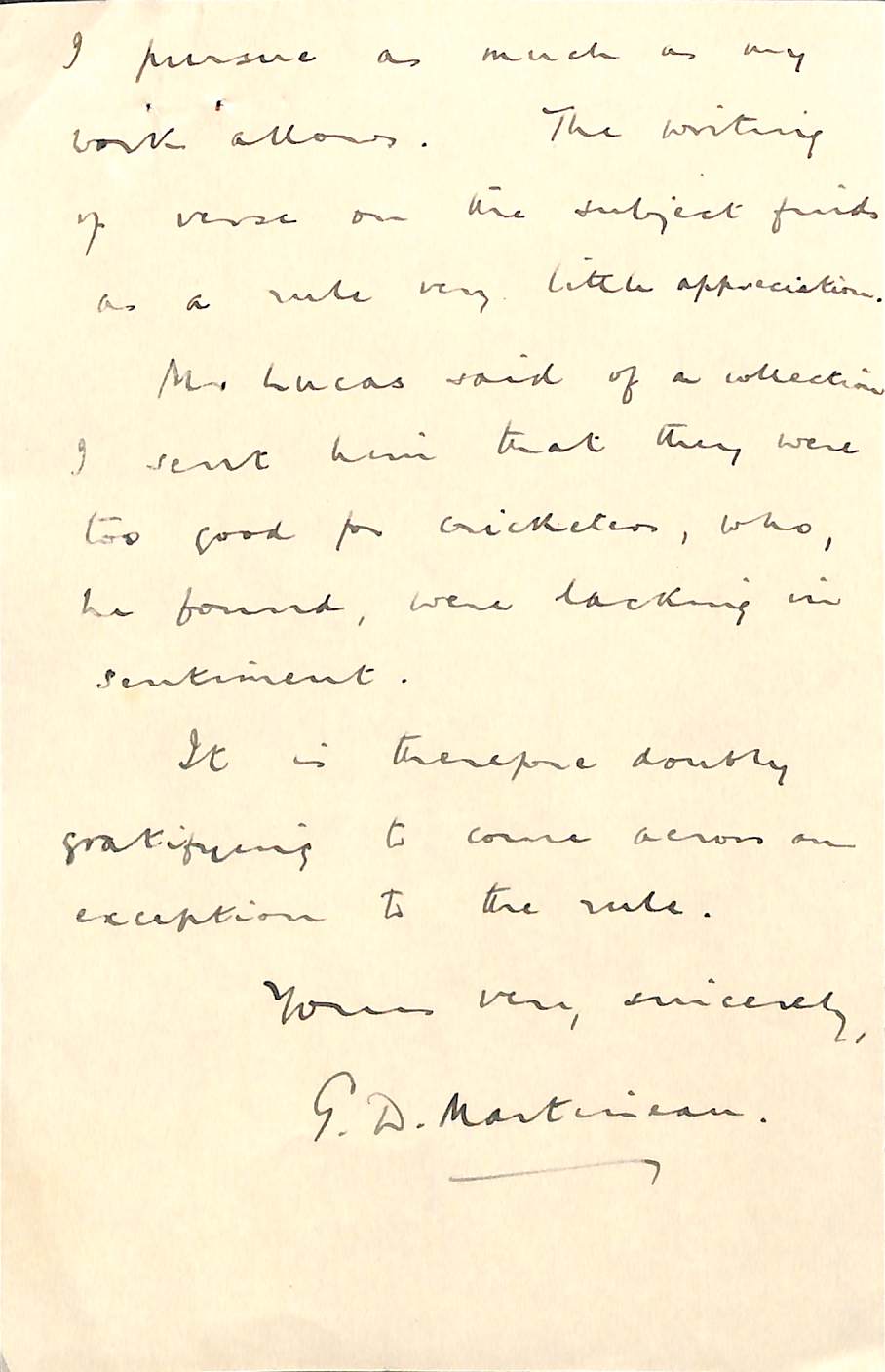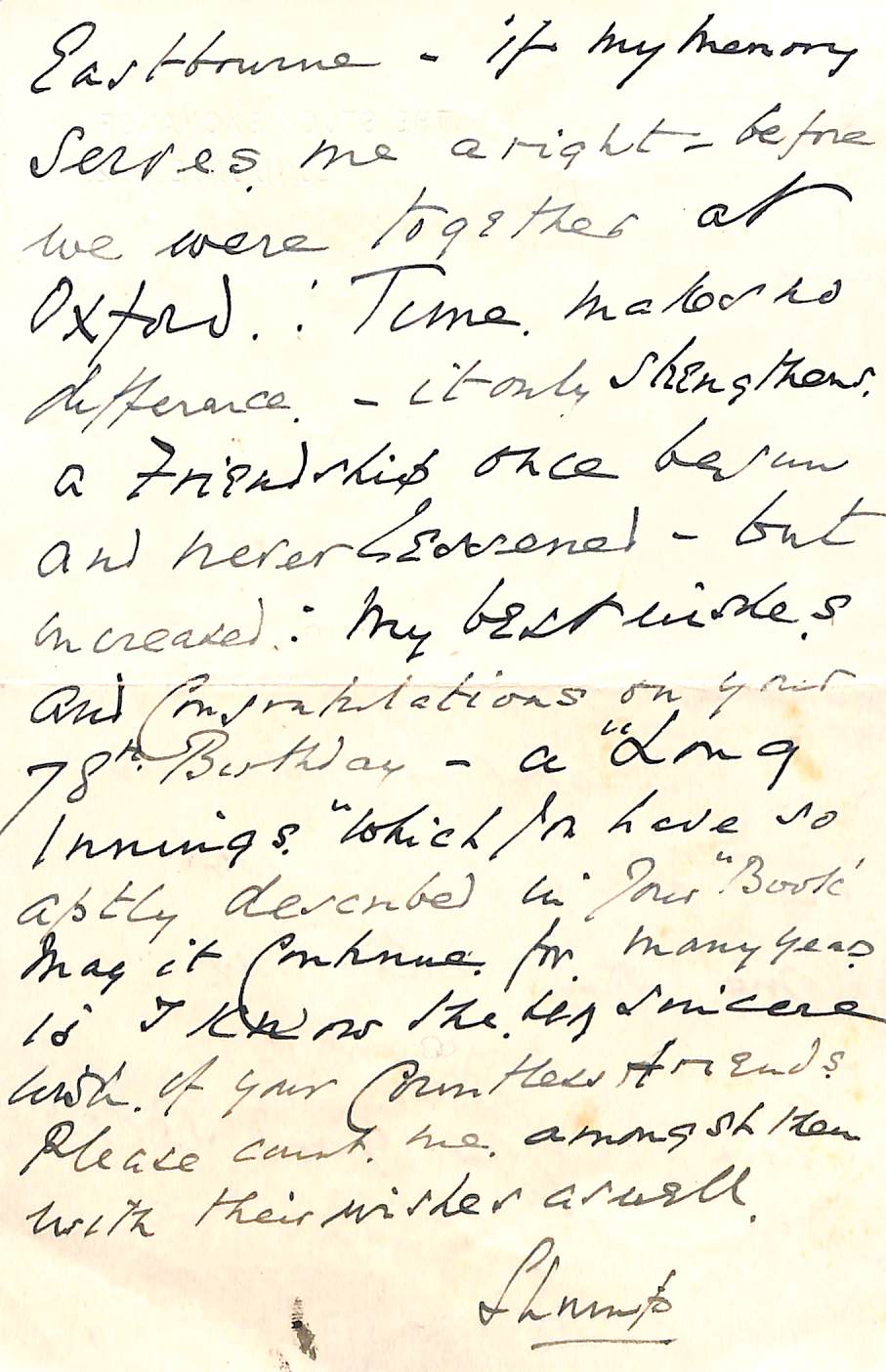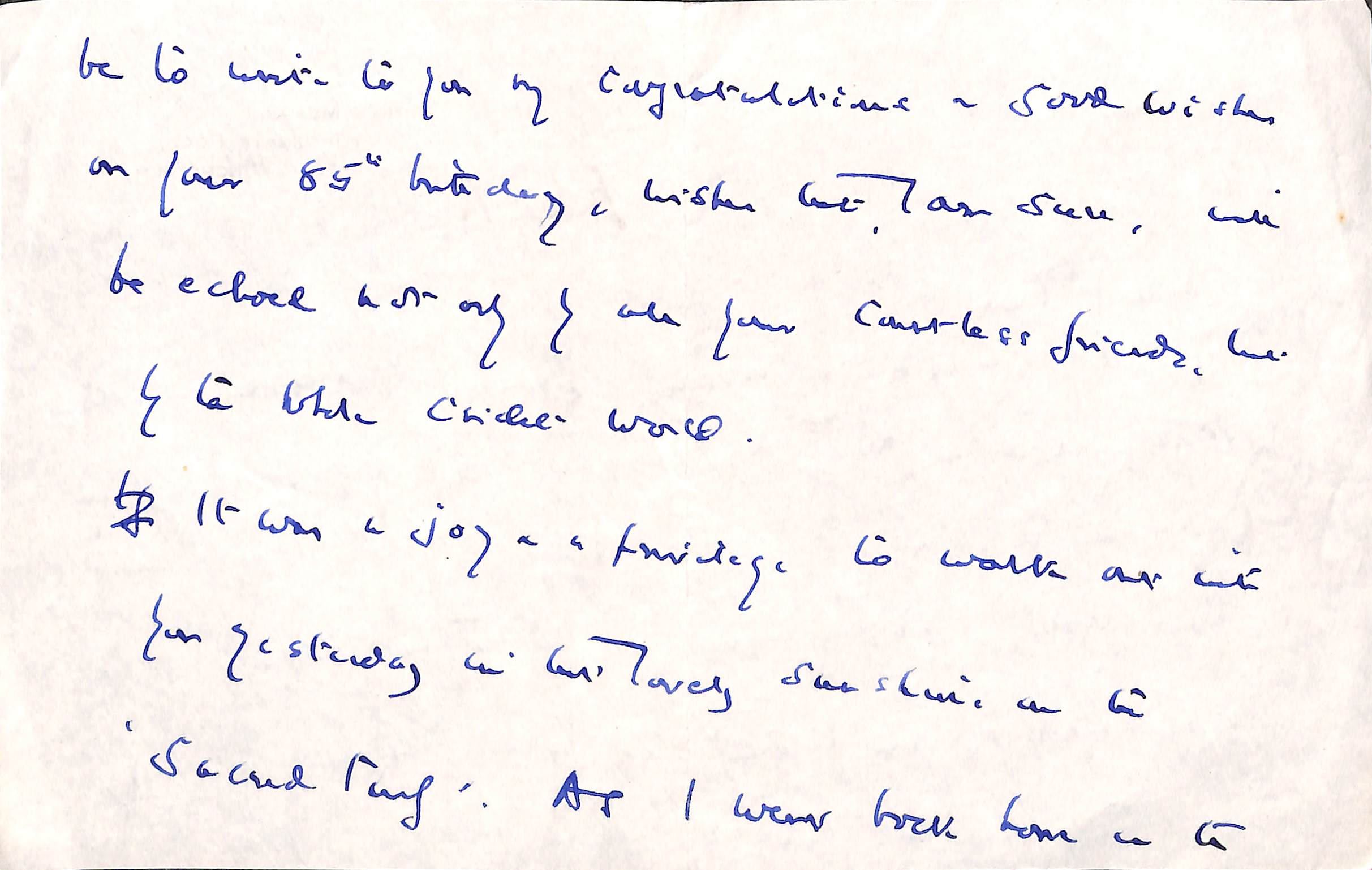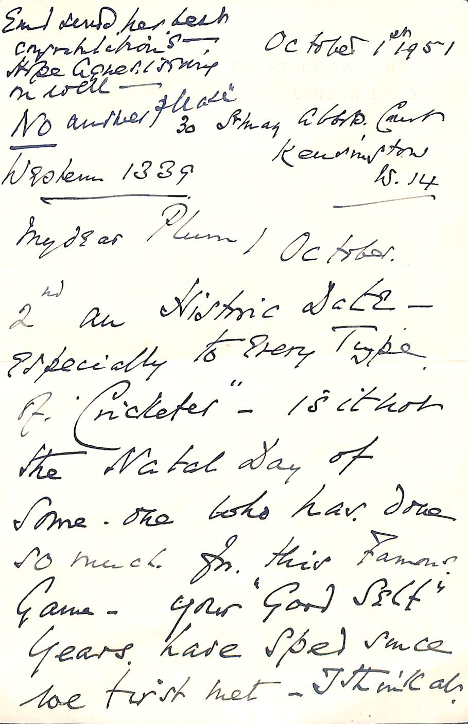 From H D G Leveson-Gower To Pelham Warner On 1st October 1951 Permission to re-use parts of the letter are granted provided the rights of the current owner and this website are acknowledged. |