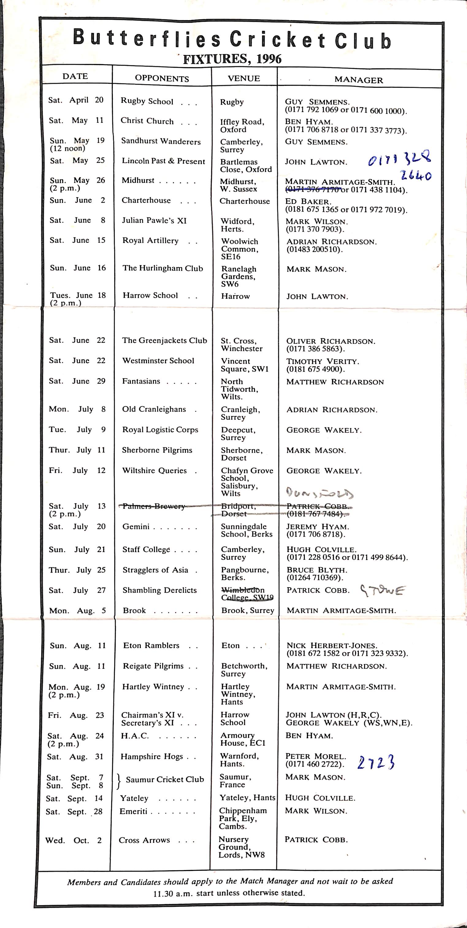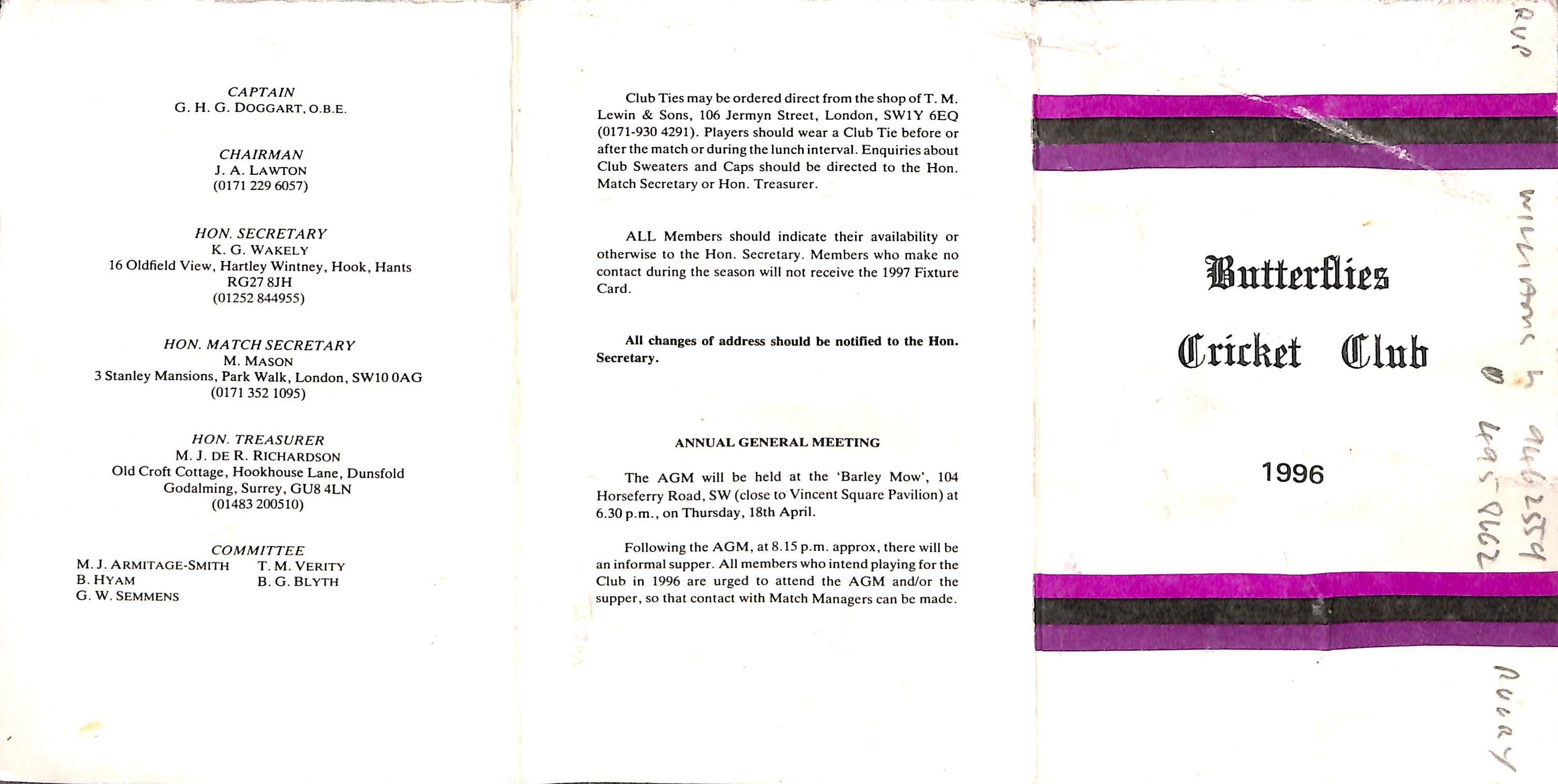 Butterflies Cricket Club 1996 |