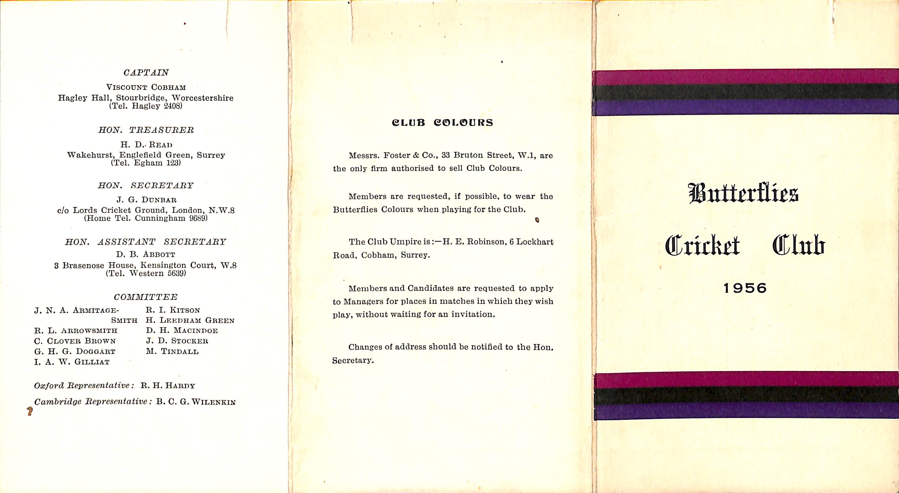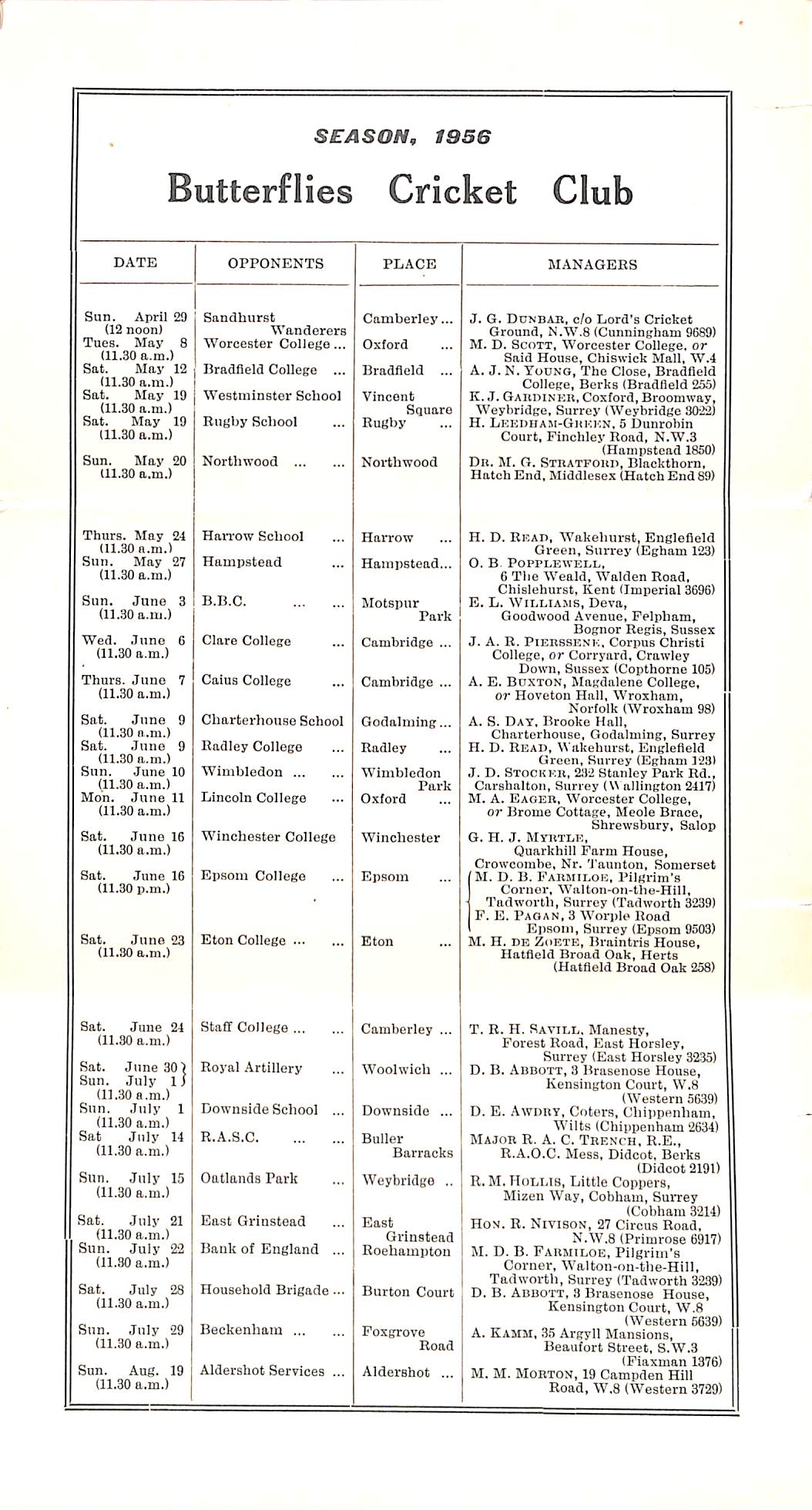 Butterflies Cricket Club 1956 |