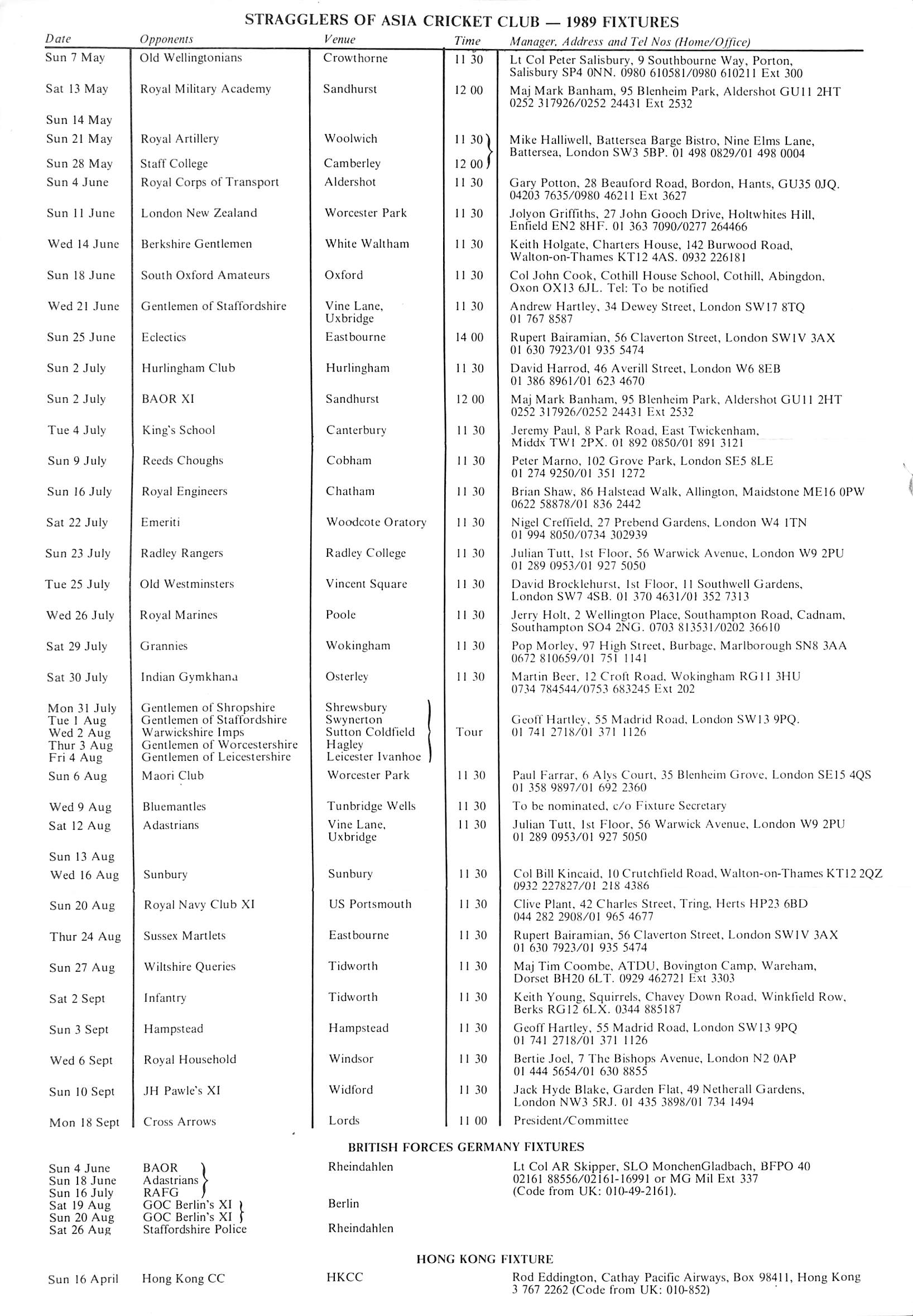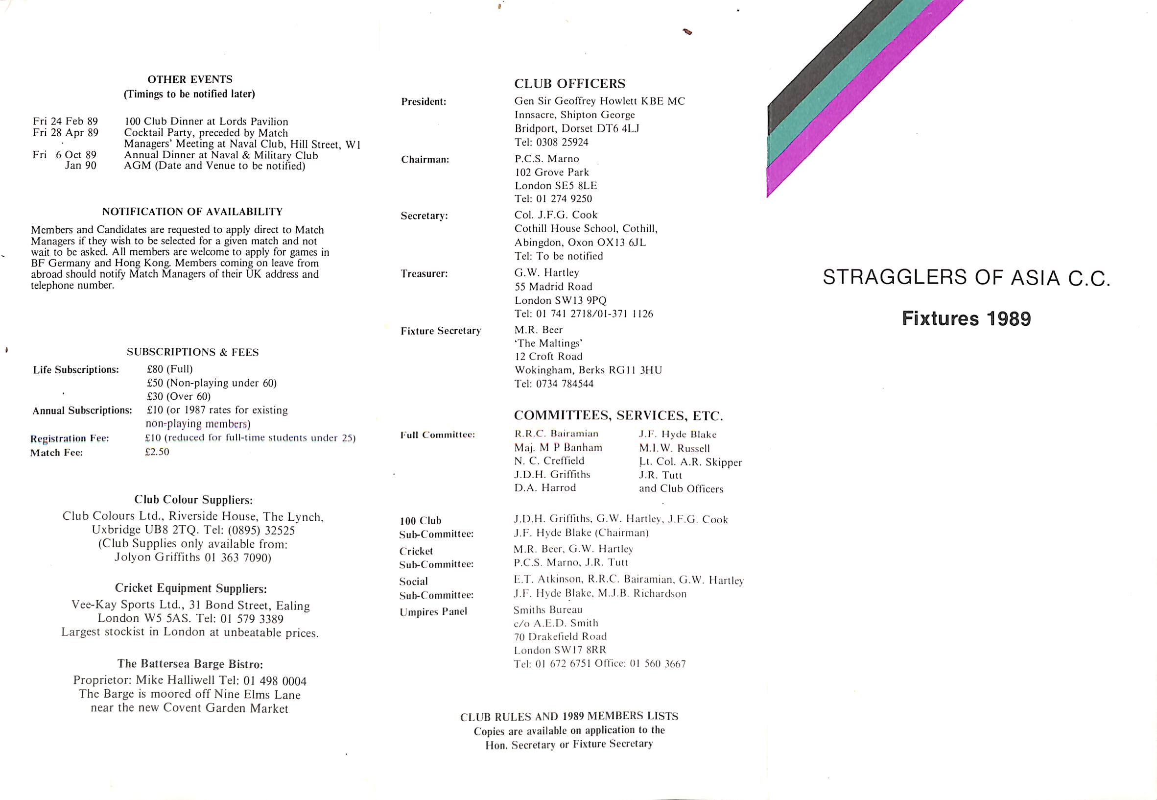 Stragglers of Asia Cricket Club 1989 |