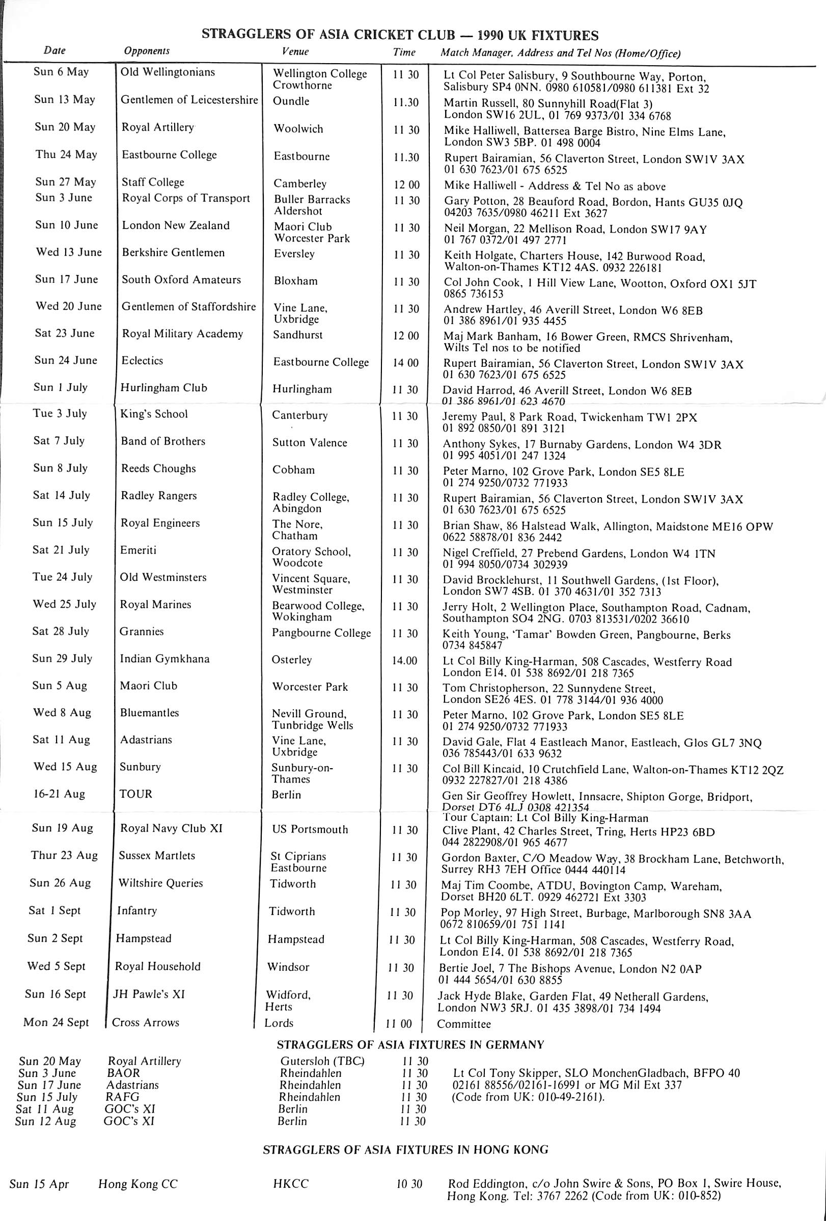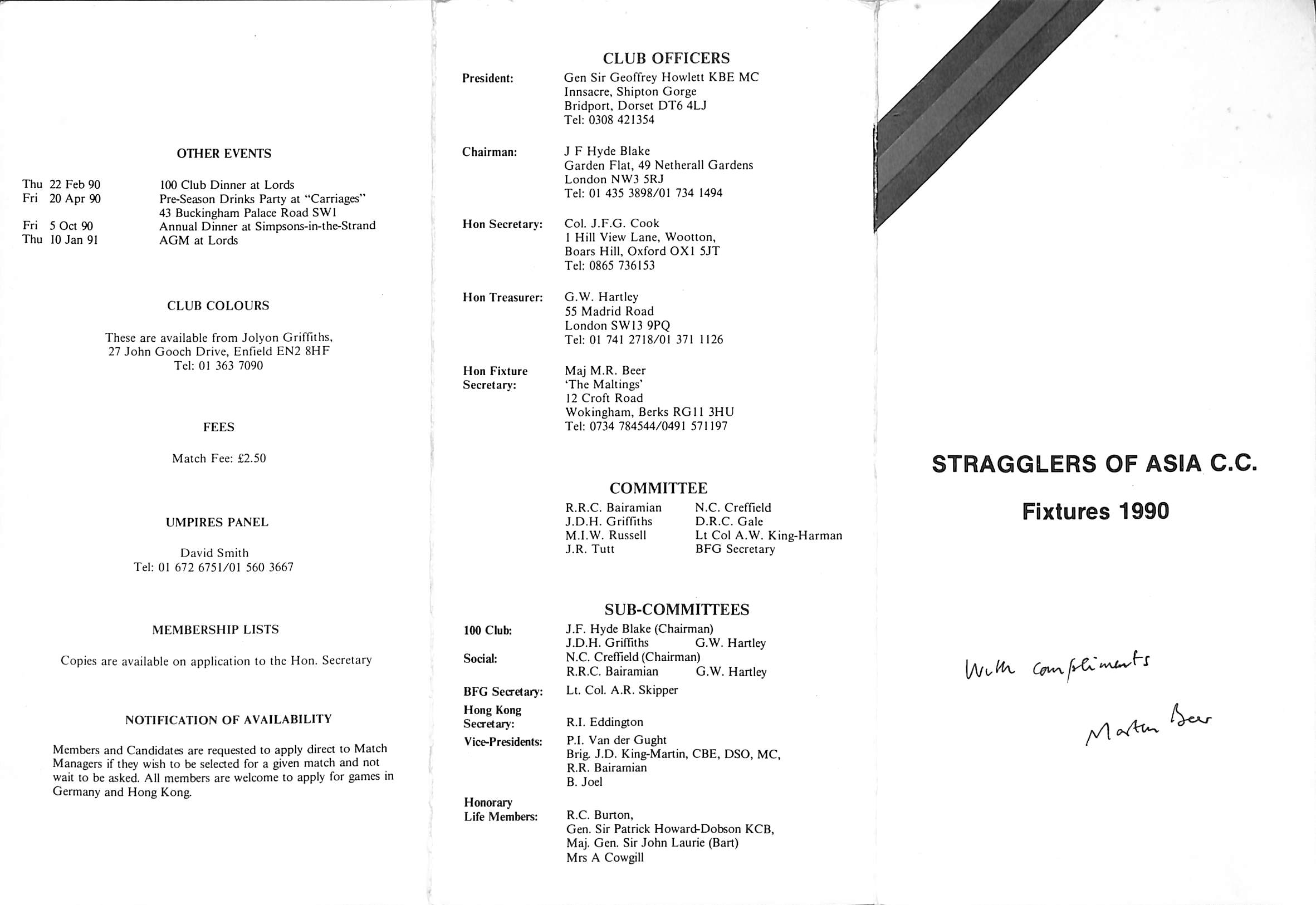 Stragglers of Asia Cricket Club 1990 |