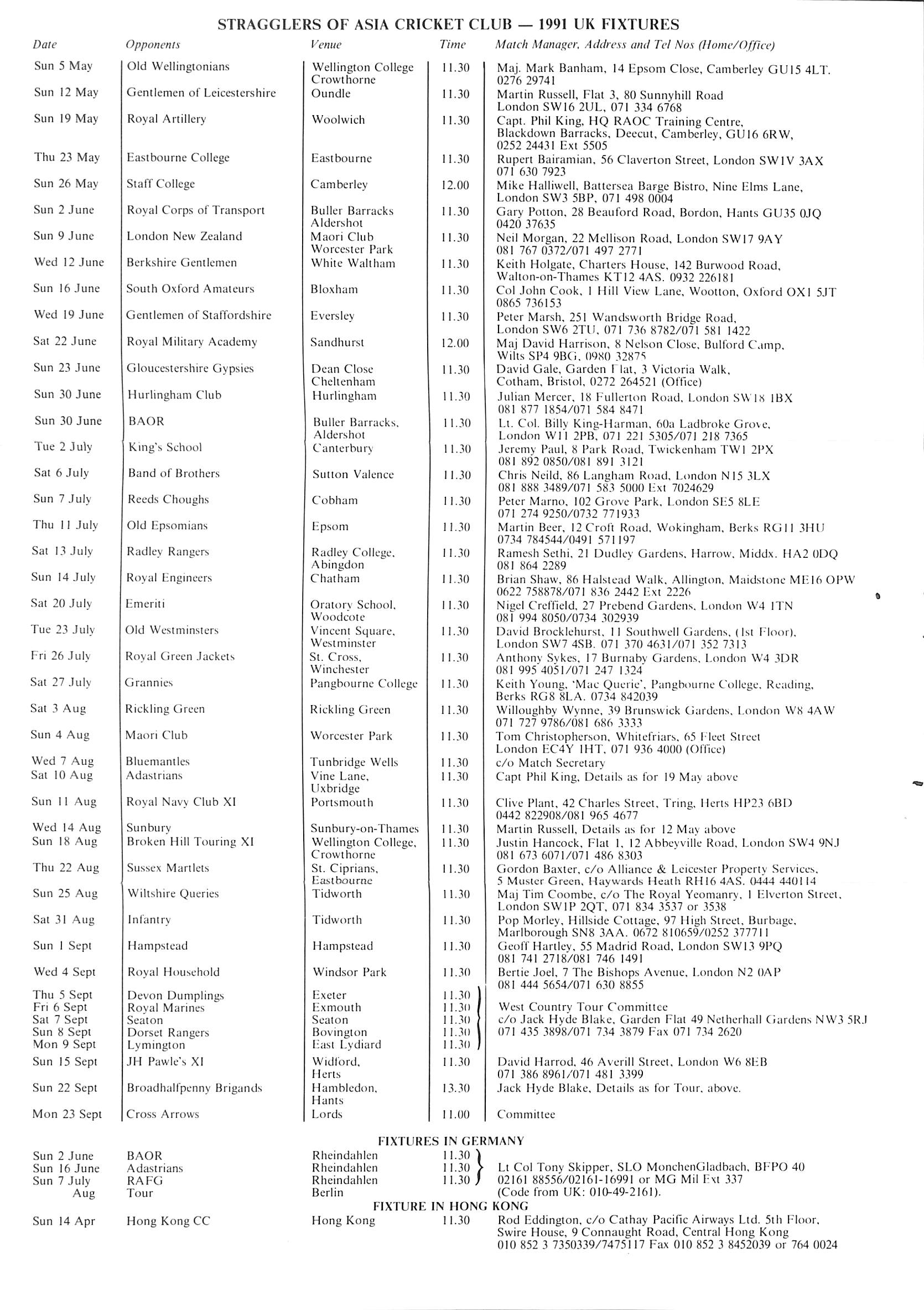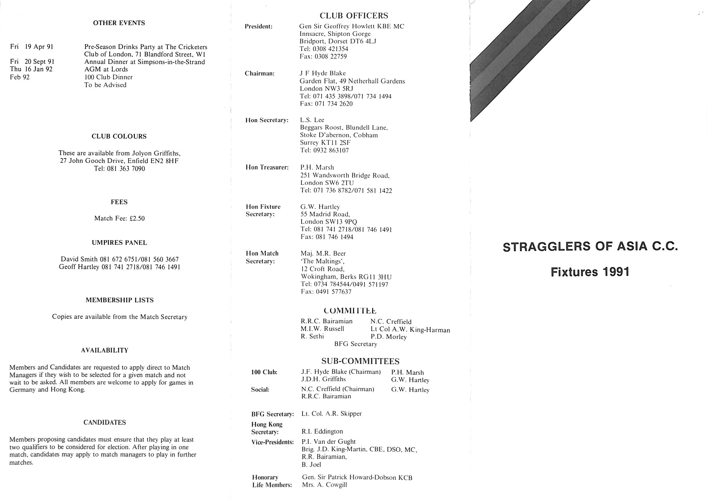 Stragglers of Asia Cricket Club 1991 |