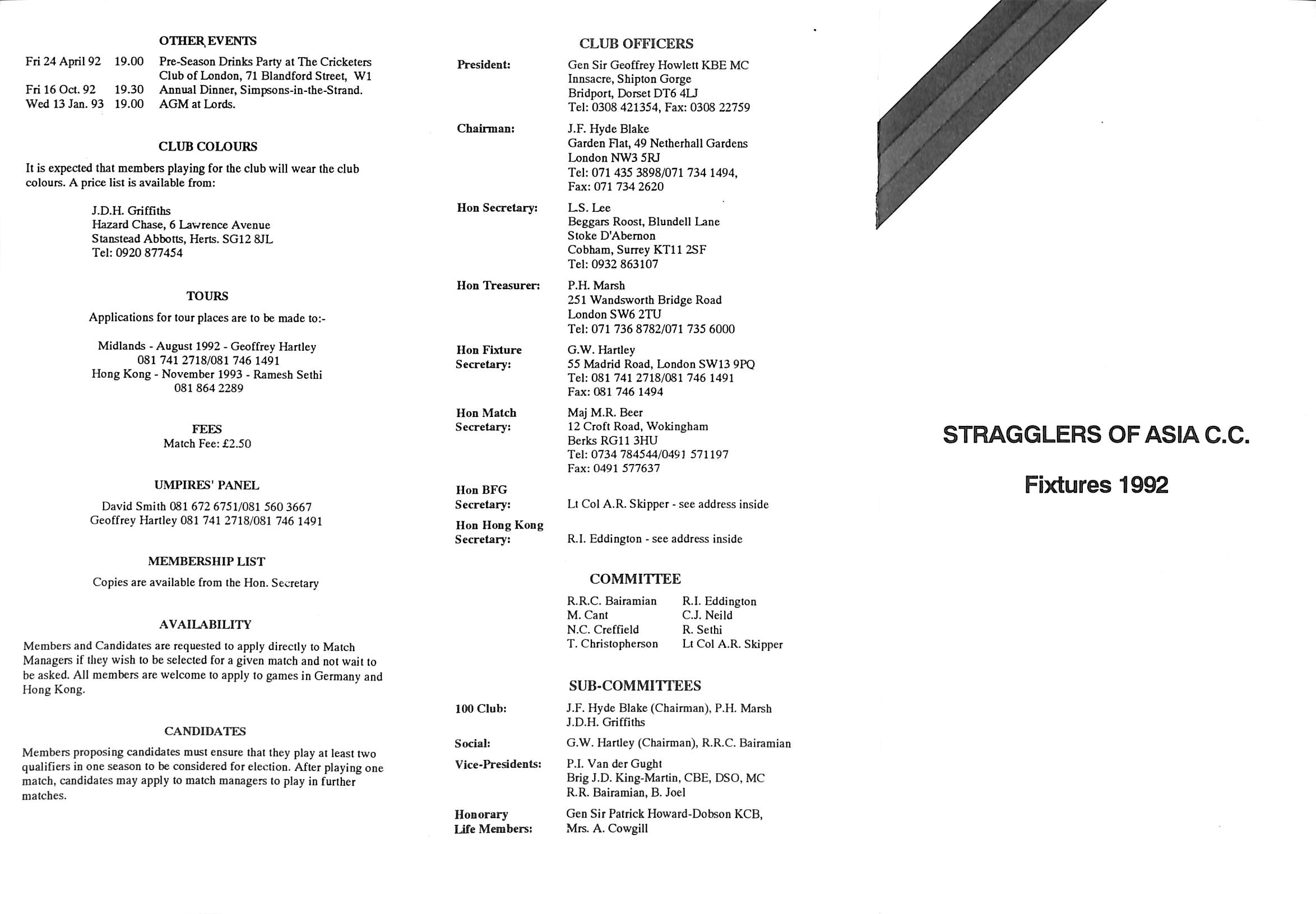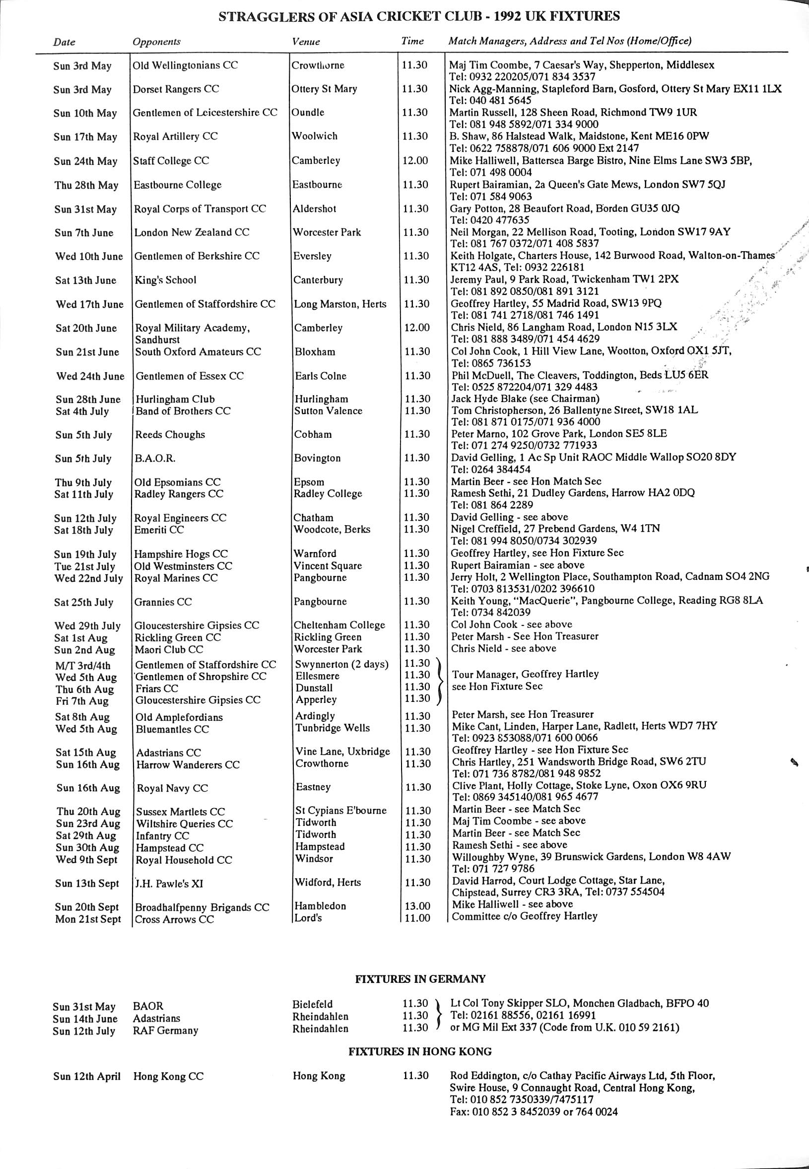 Stragglers of Asia Cricket Club 1992 |