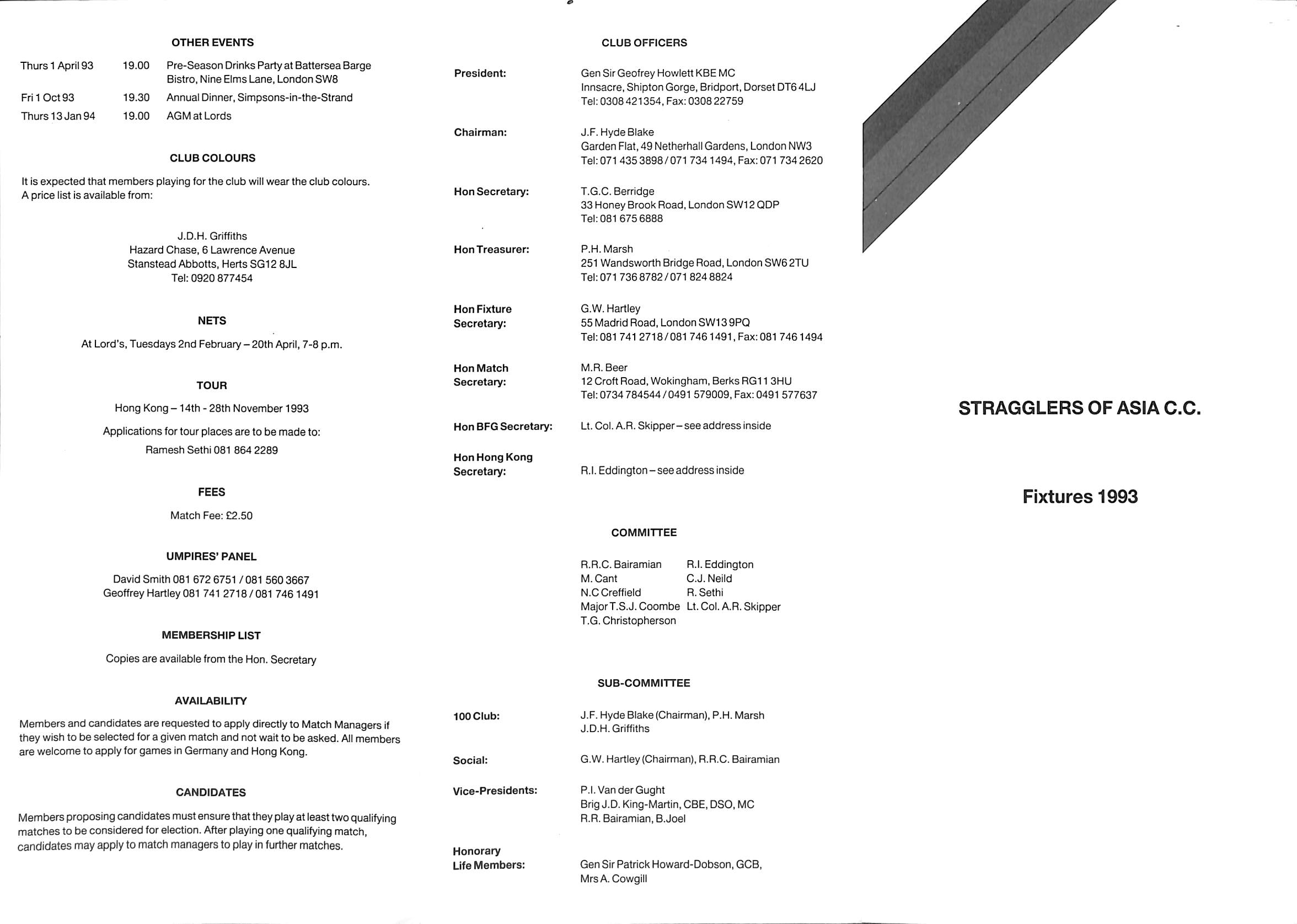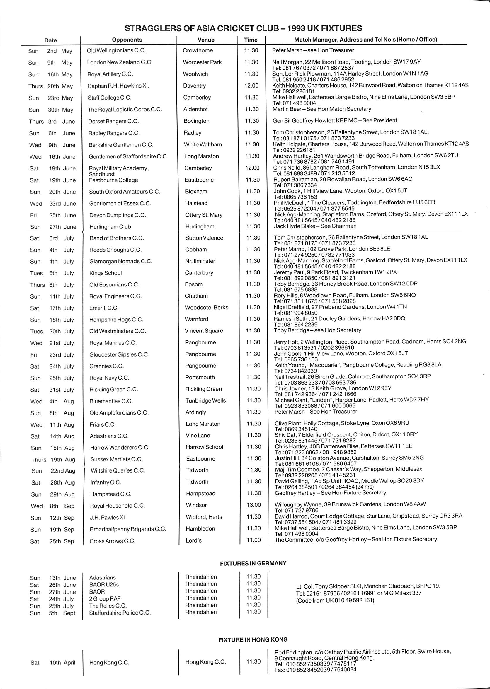 Stragglers of Asia Cricket Club 1993 |