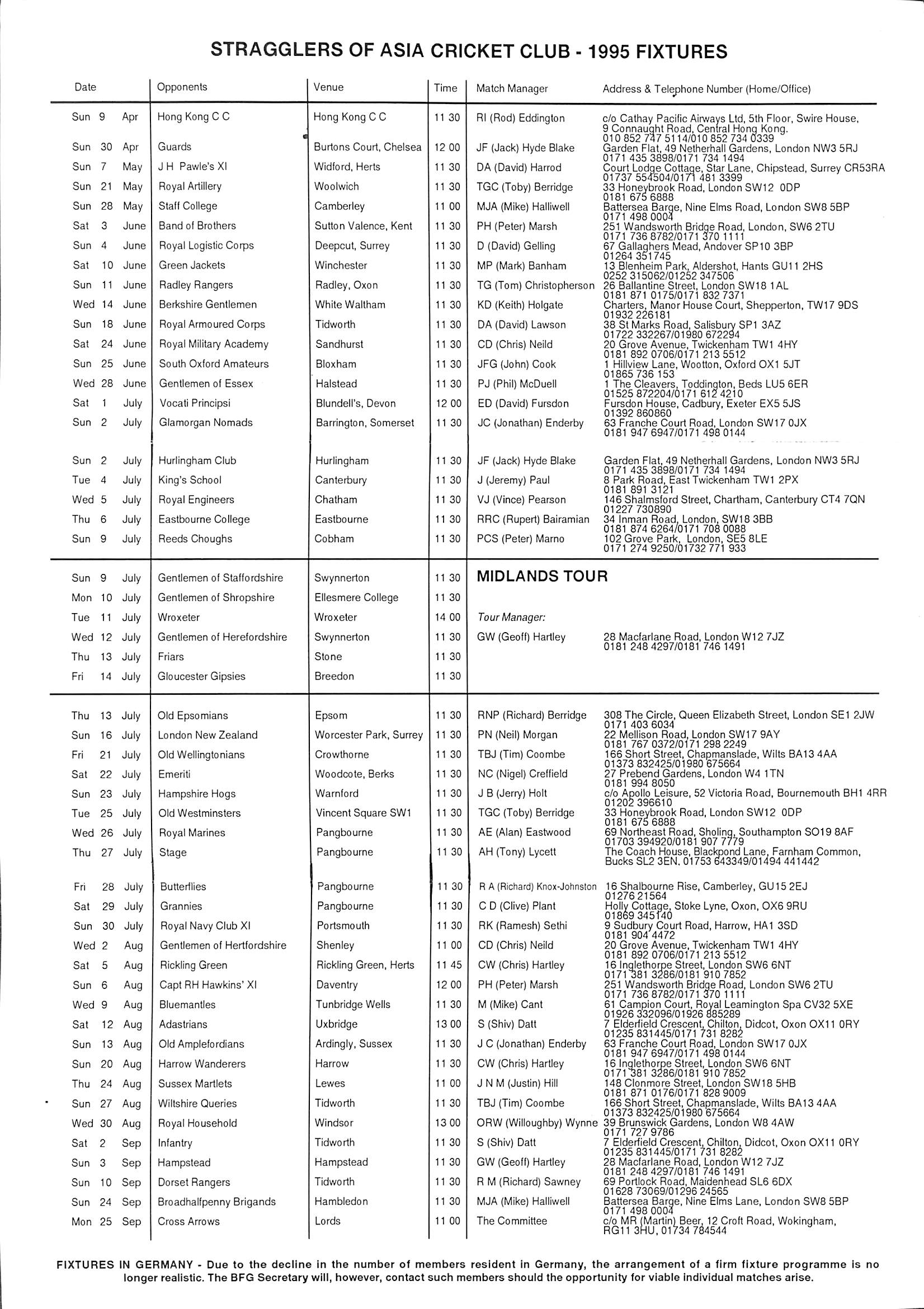 Stragglers of Asia Cricket Club 1995 |