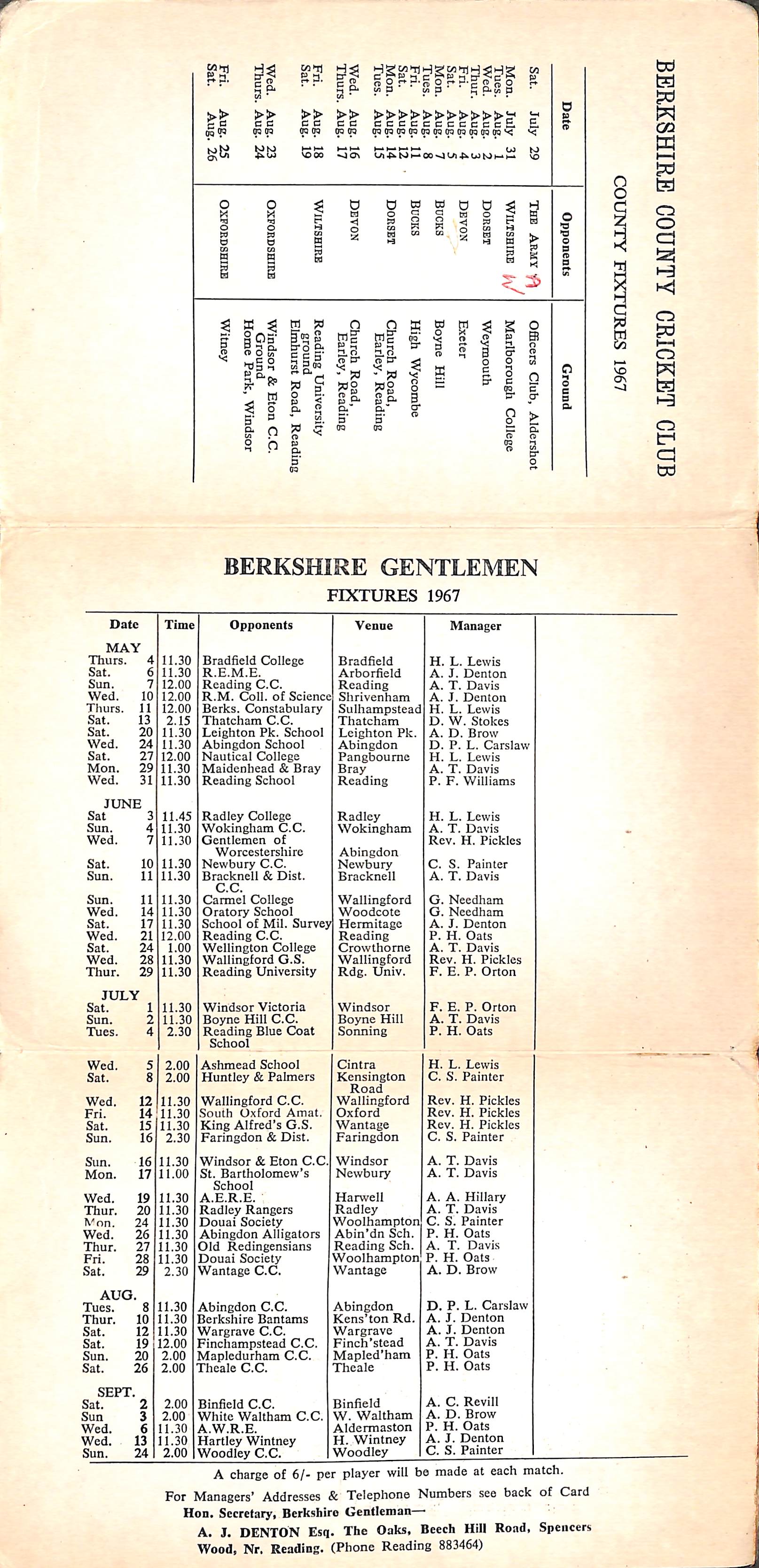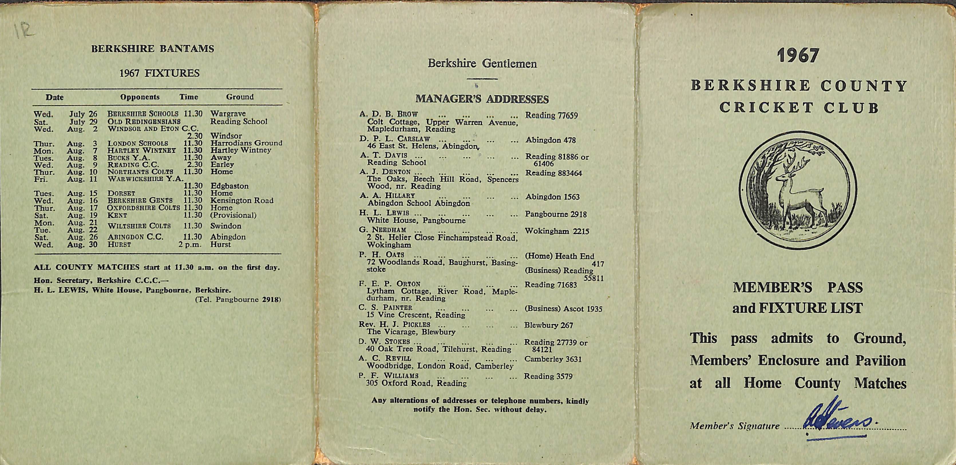 Berkshire County Cricket Club 1967 |