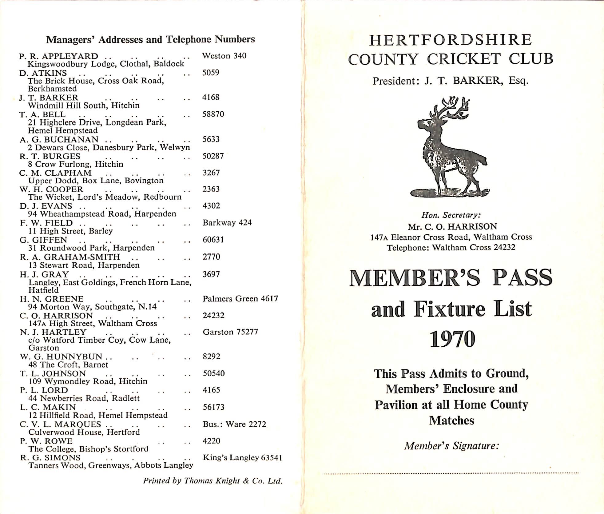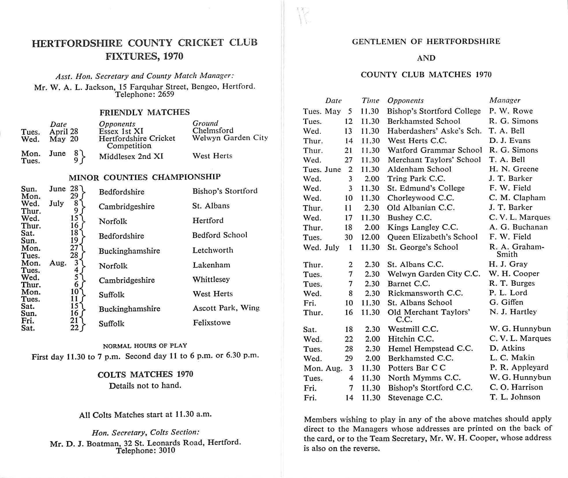 Hertfordshire County Cricket Club 1970 |