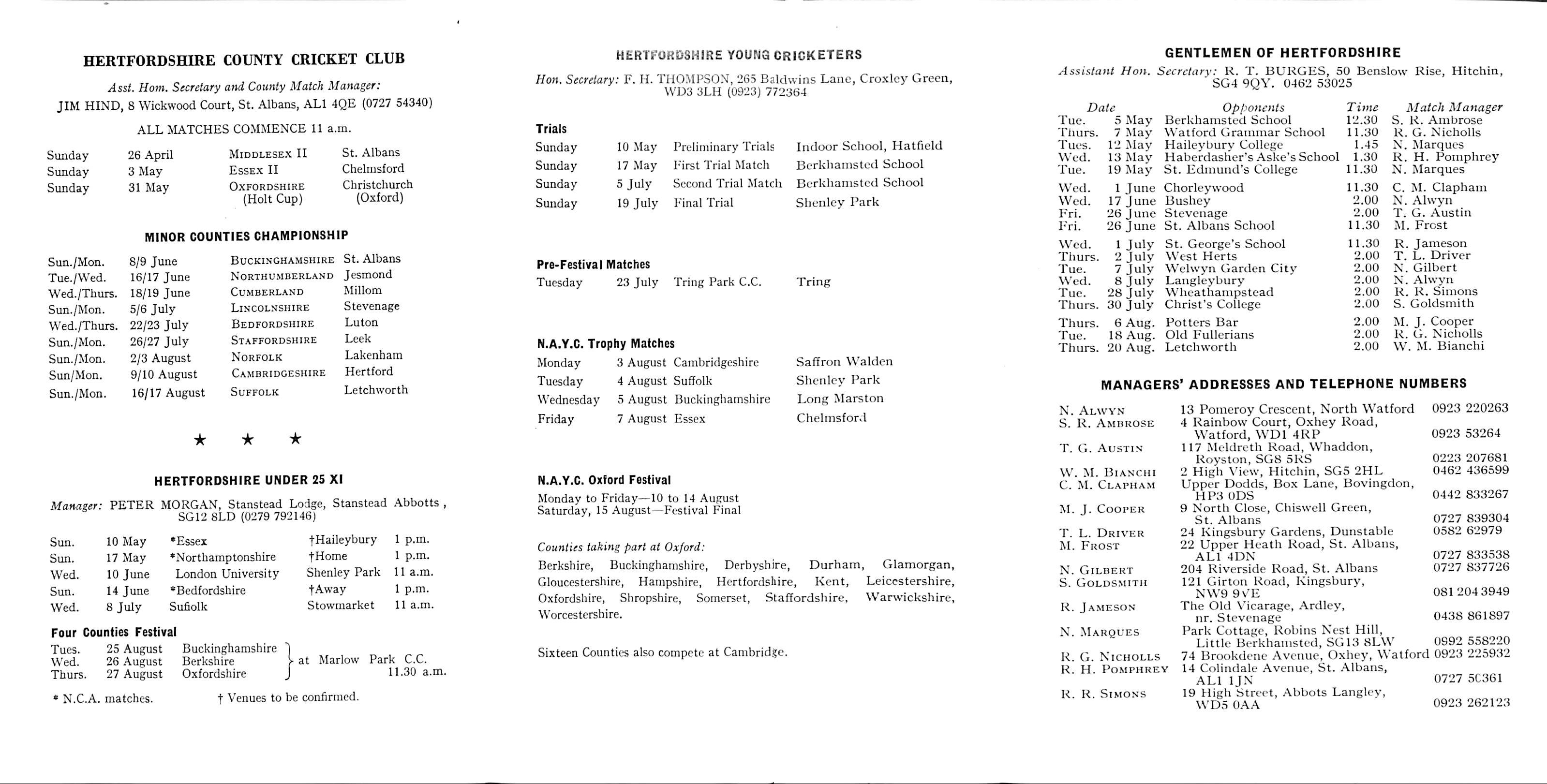 Hertfordshire County Cricket Association 1992 |