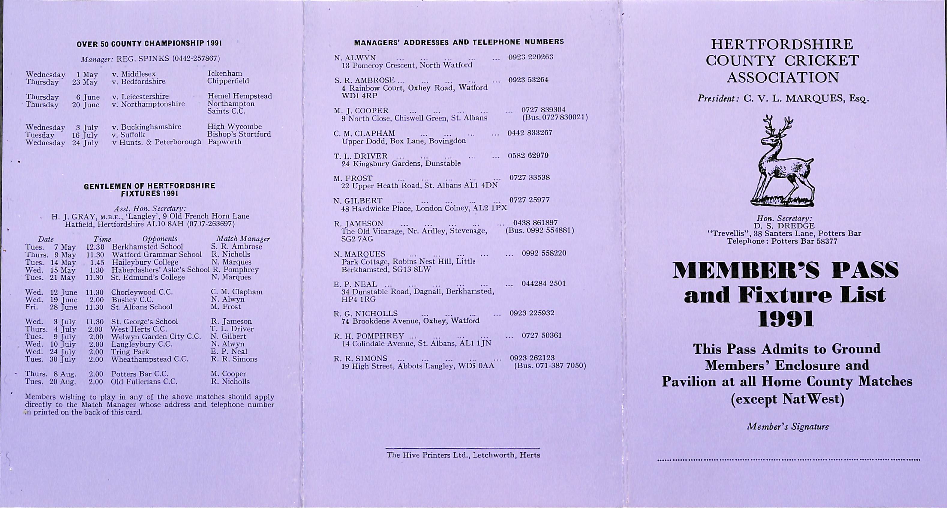 Hertfordshire County Cricket Association 1991 |
