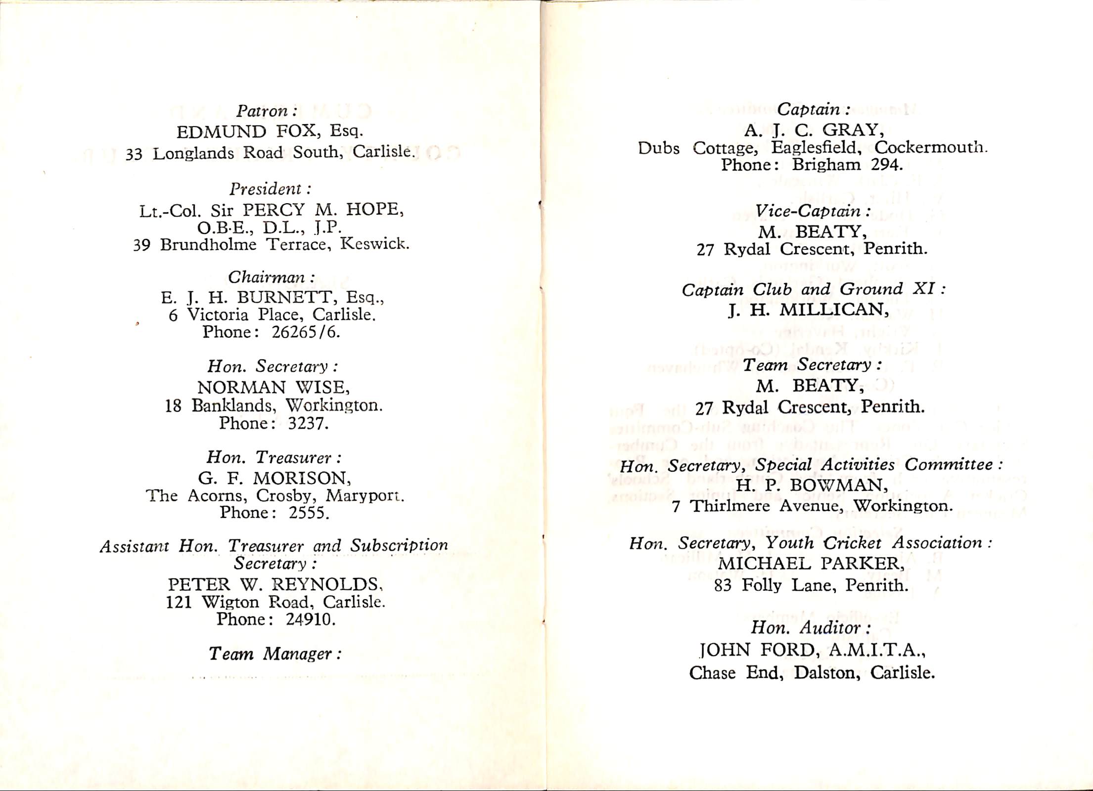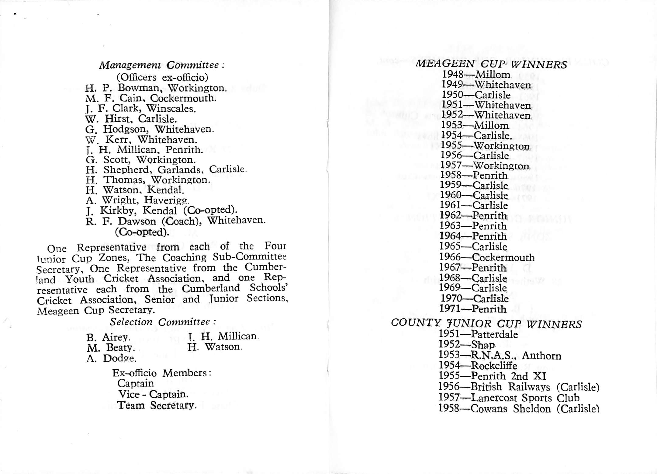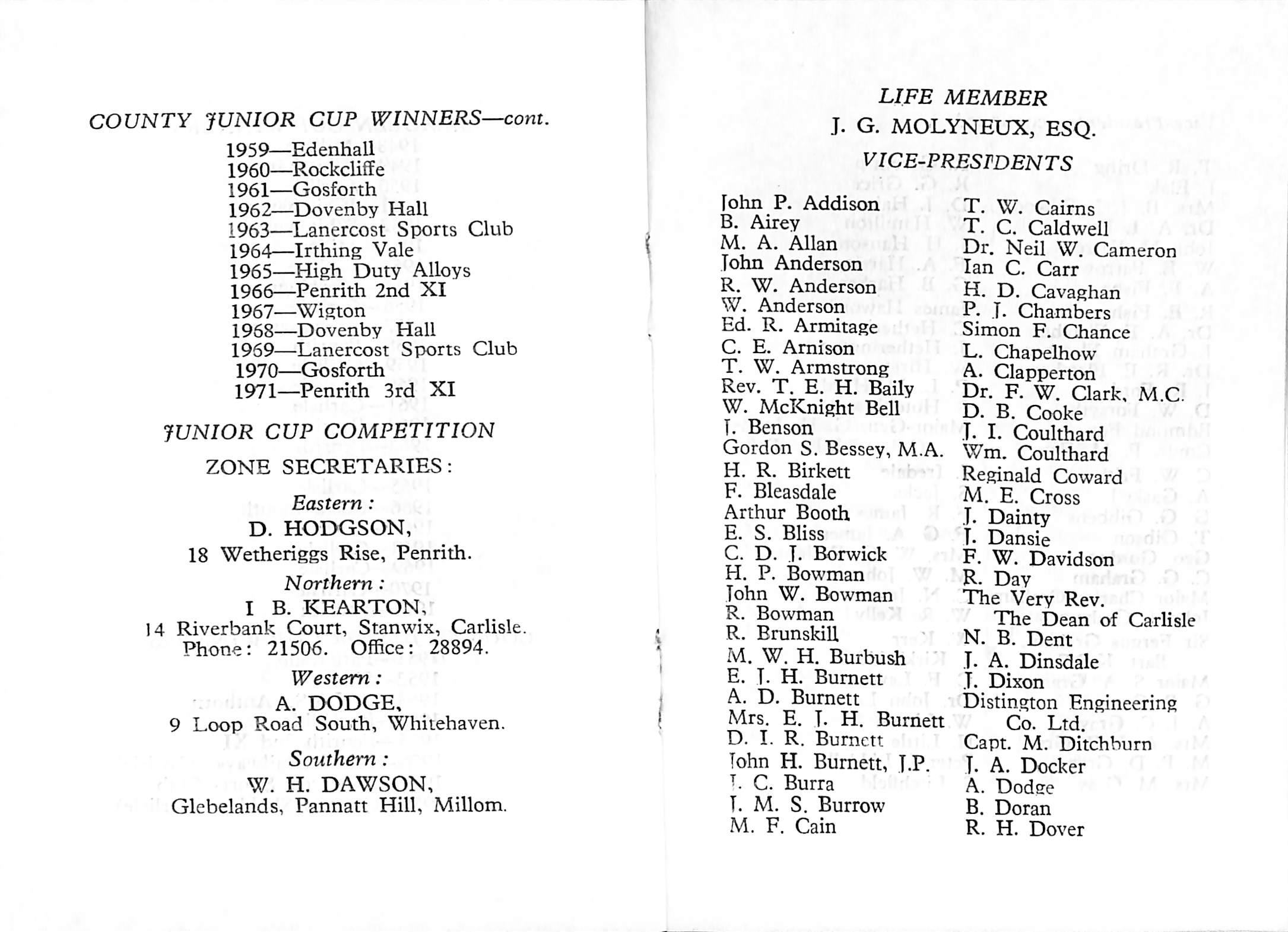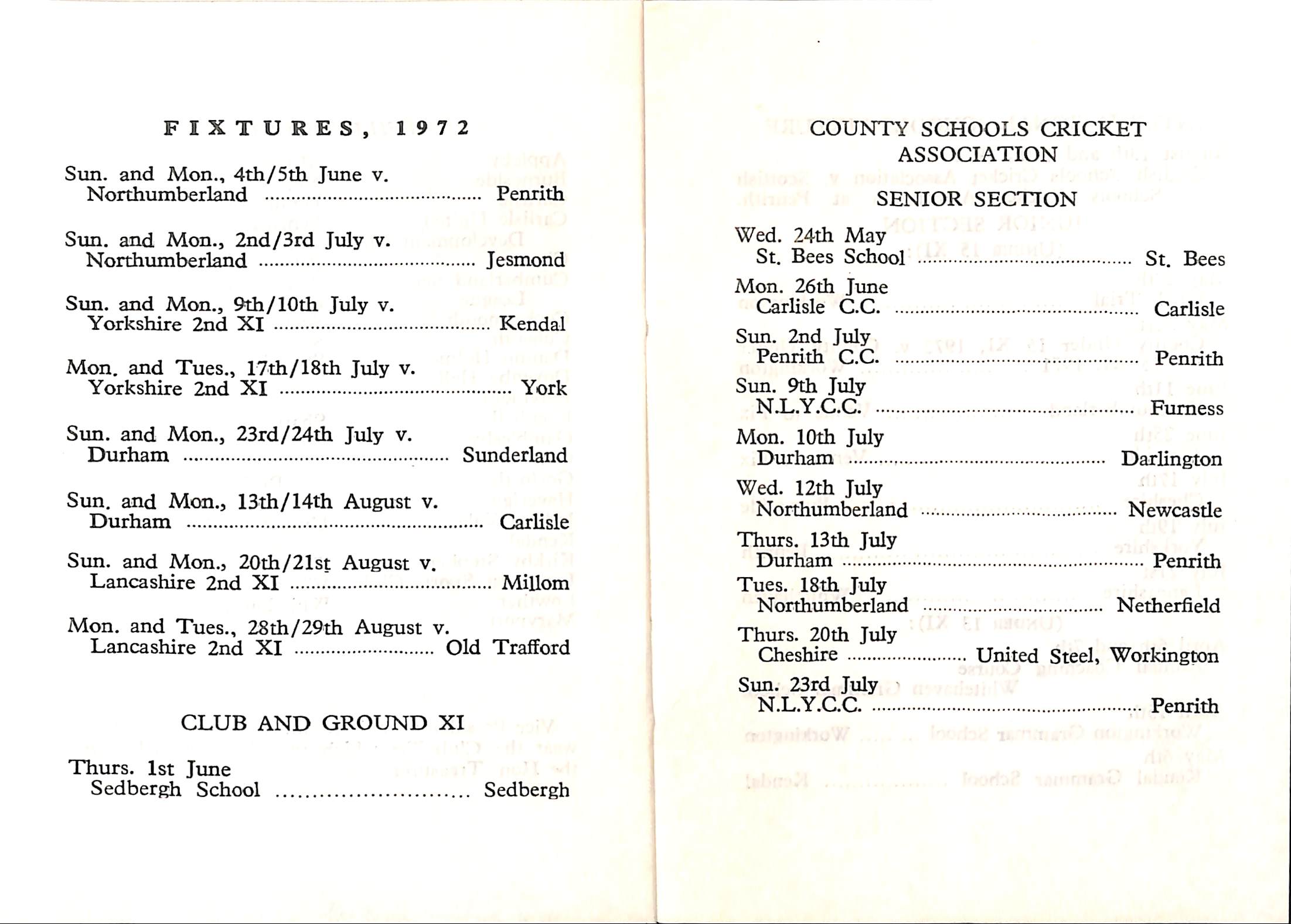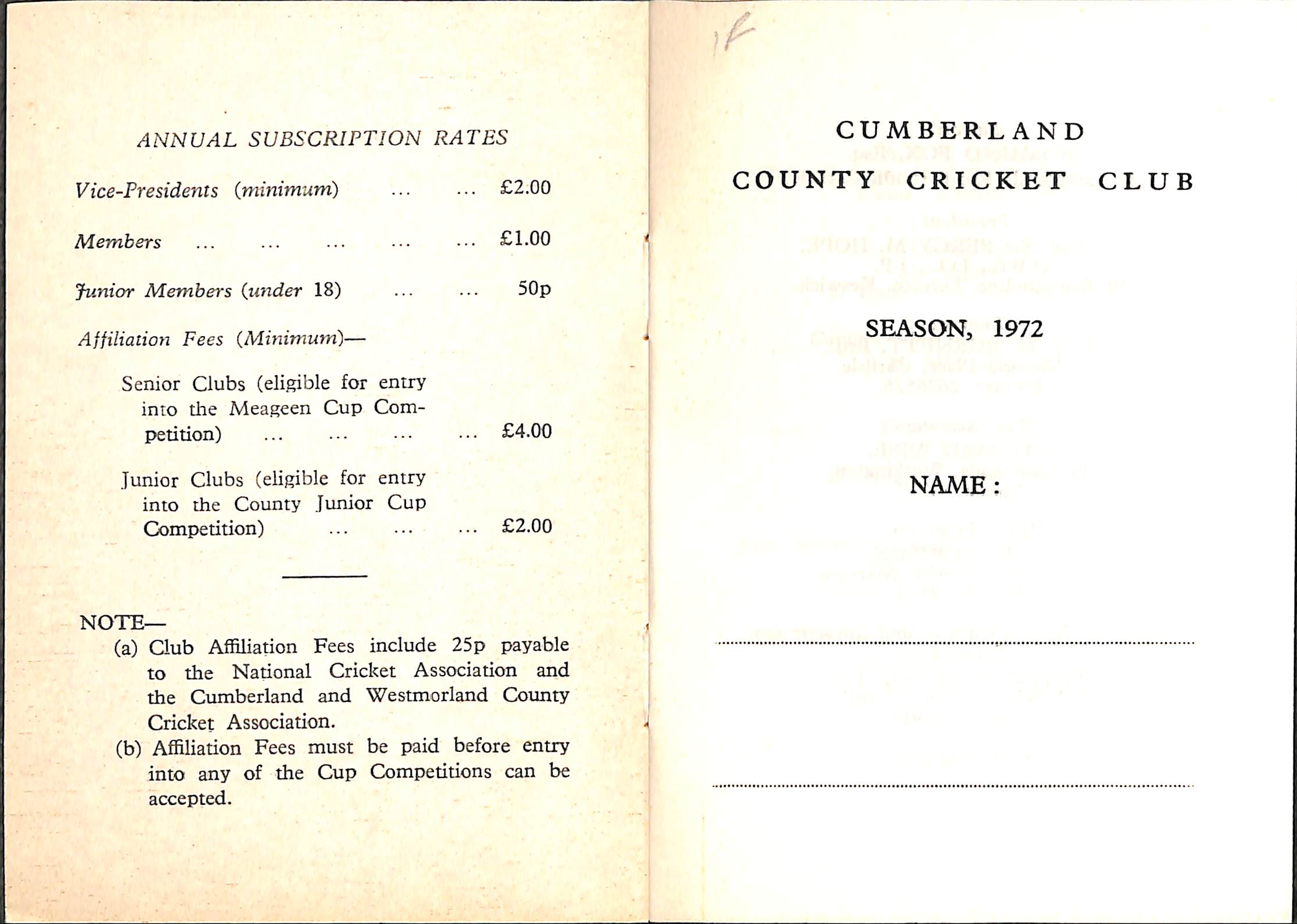 Cumberland County Cricket Club 1972 |